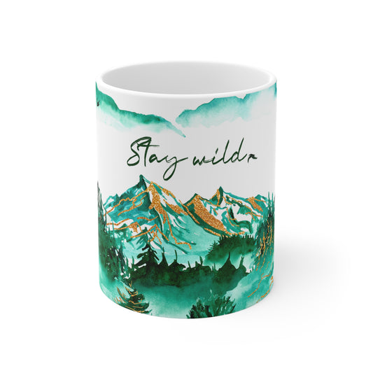 Mountain Wolf Eagle Scene Ceramic Mug 11oz