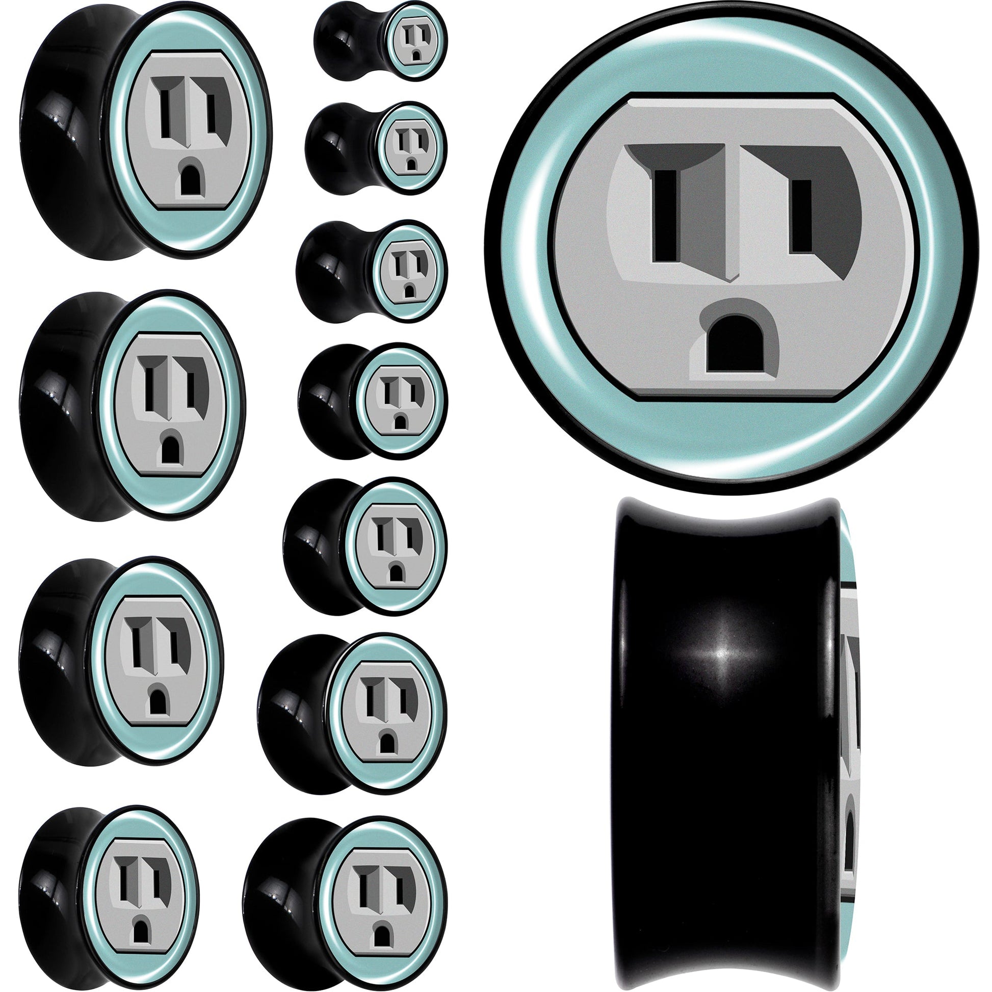 If you're not feeling plugged in and you're ready to power down, let the world know with these 8mm saddle plugs for stretched lobes. They're made with black acrylic and feature a saddle design for comfortable insertion and removal. Each one features a grey electrical outlet on a blue background. The sockets in the outlet appear to be making a frowny face for days when your power is low. Feel the frown on these charming ear gauges. Sold as a set of two.