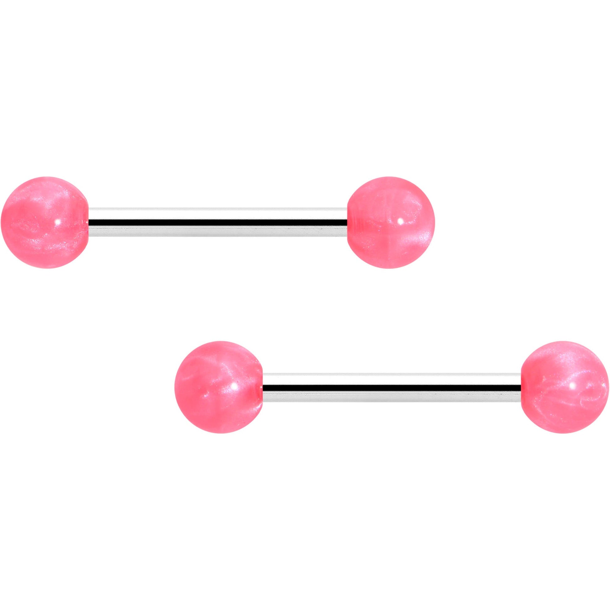 Brighten up your style when you are rocking this 14 gauge nipple jewelry. It is made with 14mm durable 316L surgical grade stainless steel straight barbell with 5mm ball ends. It features bright color acrylic ball ends for gorgeous burst of color that is sure to get noticed. Let a new day dawn for your look when you're rocking these bright nipple piercing rings. Sold as a set of two.