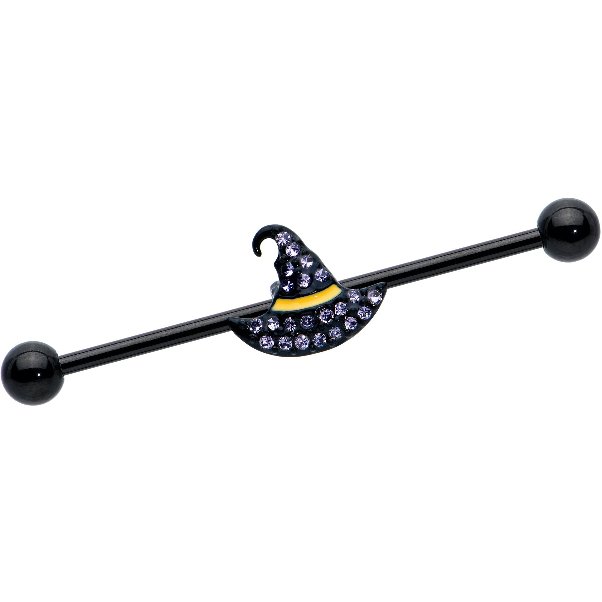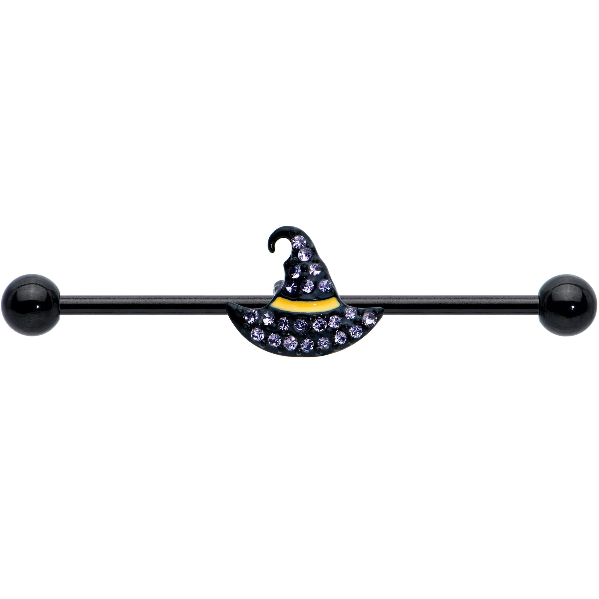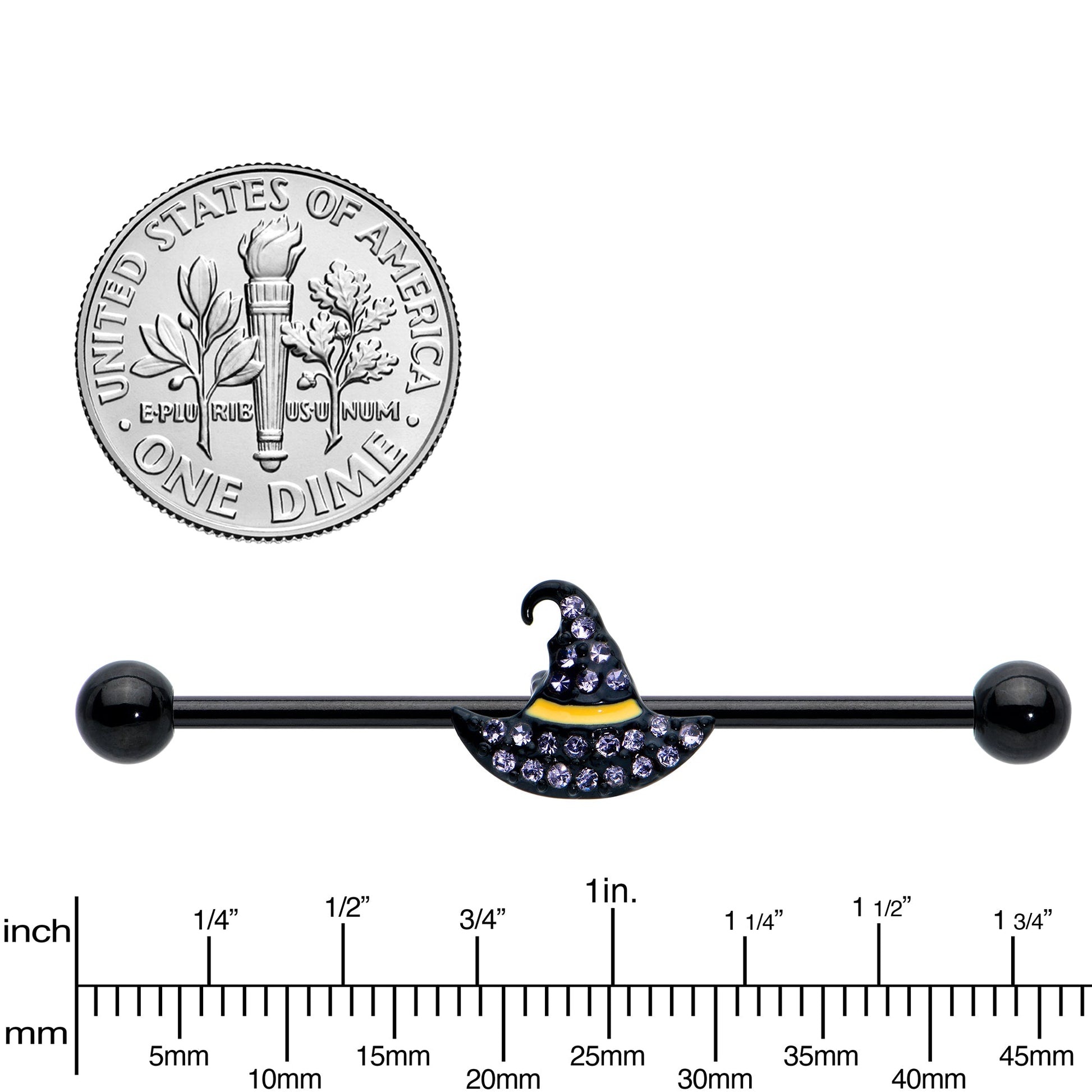 14 Gauge Clear Gem Black Witch Hat Halloween Industrial Barbell 38mm