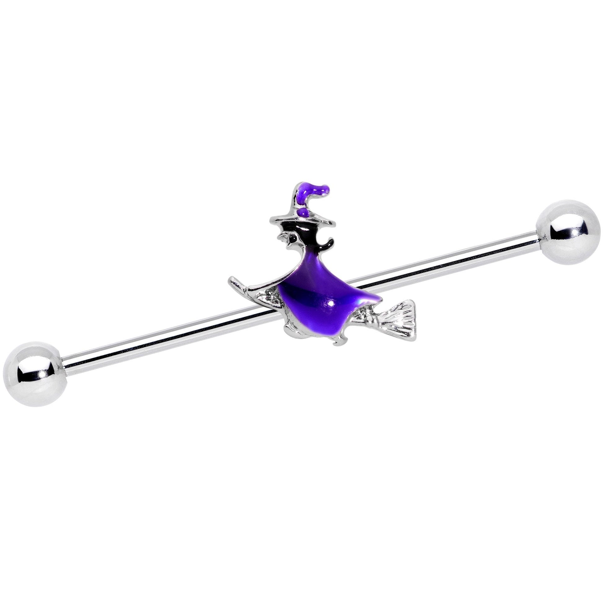 This little witch is going to ride her broom all around town whenever you wear this fun 14 gauge industrial jewelry. Made with a 1 1/2" durable 316L surgical grade stainless steel straight barbell, this industrial piercing features a moveable charm of a witch on her broom!Specifications