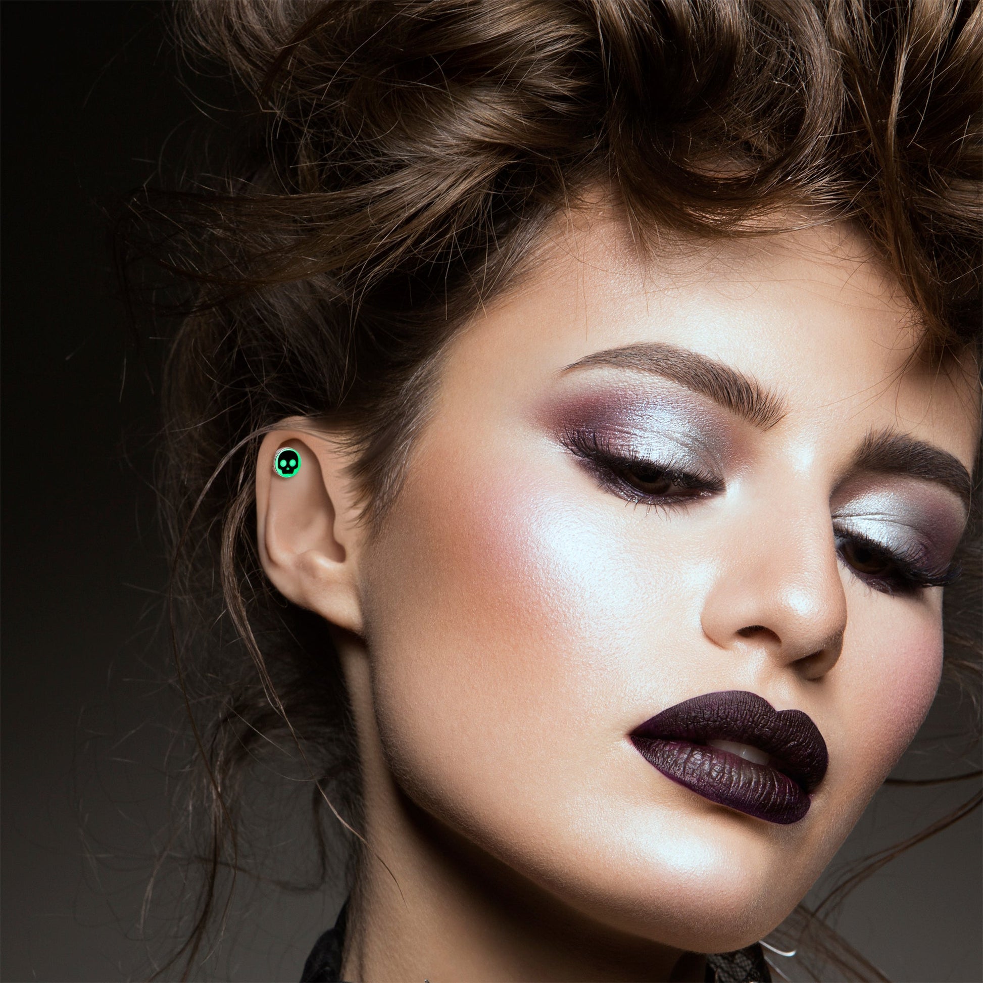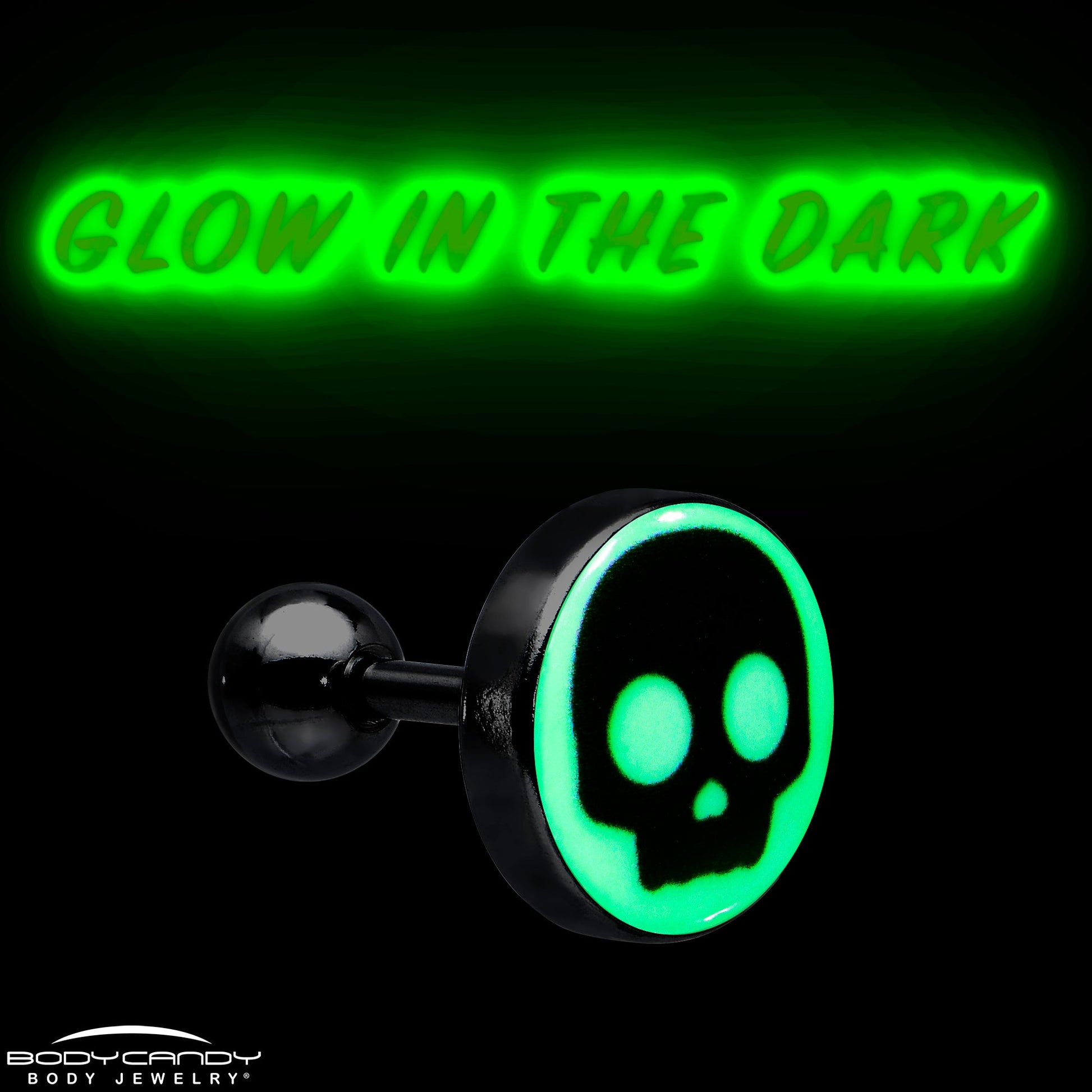 Hypoallergenic jewelry for sensitive skin.16 Gauge 1/4 Glow in the Dark Simple Skull Tragus Cartilage Earring