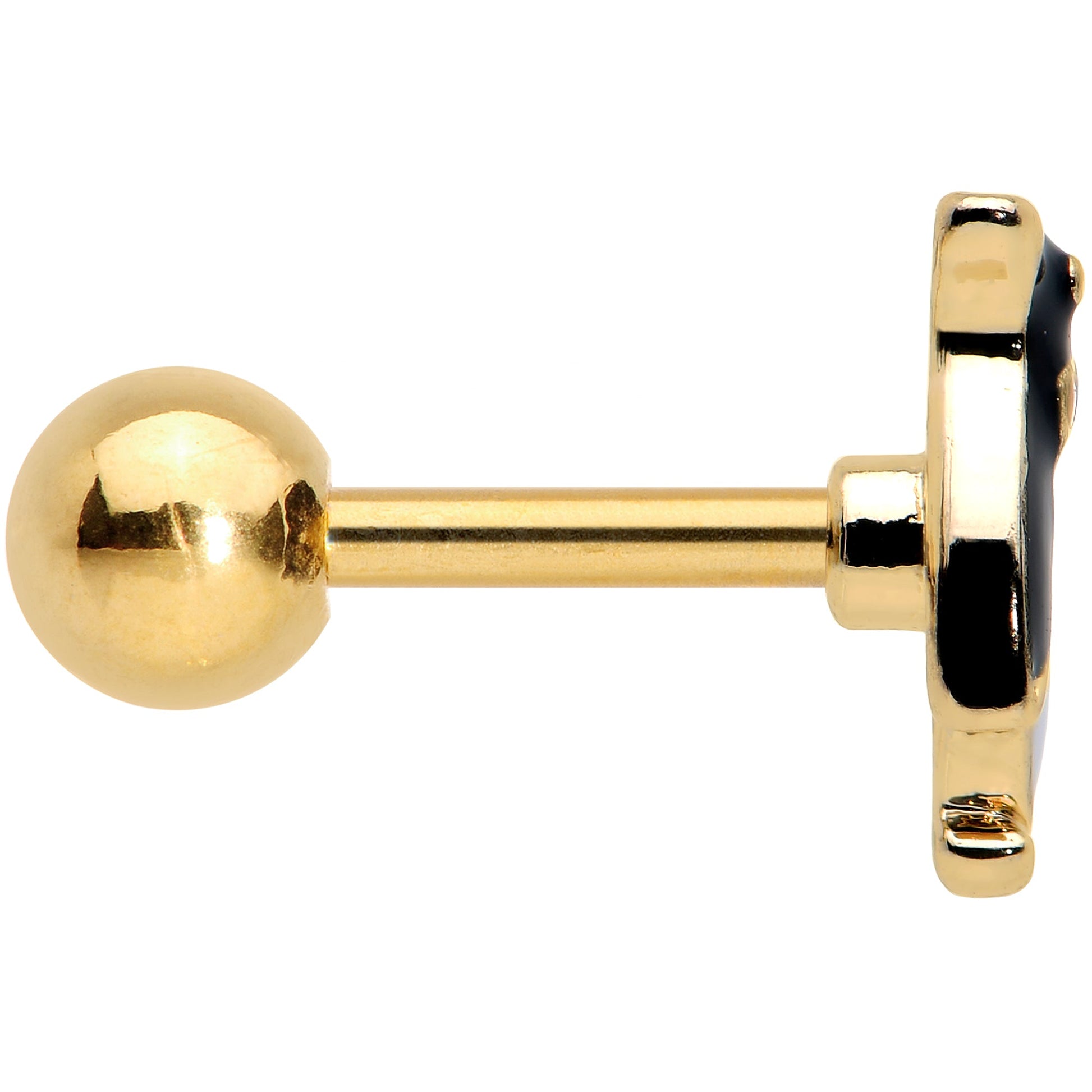 Keep cool this holiday season with this fun 16 gauge tragus stud with winter style. It's made with a 6mm gold tone PVD over 316L surgical grade stainless steel straight barbell with a 4mm ball end. It features a penguin charm, wearing a fashionable bow tie with red gem embellishments. It can even be worn in a variety of piercing including tragus, helix, and some conch piercings. It's never too cold to look fabulous with this polished-looking penguin cartilage piercing jewelry.Specifications