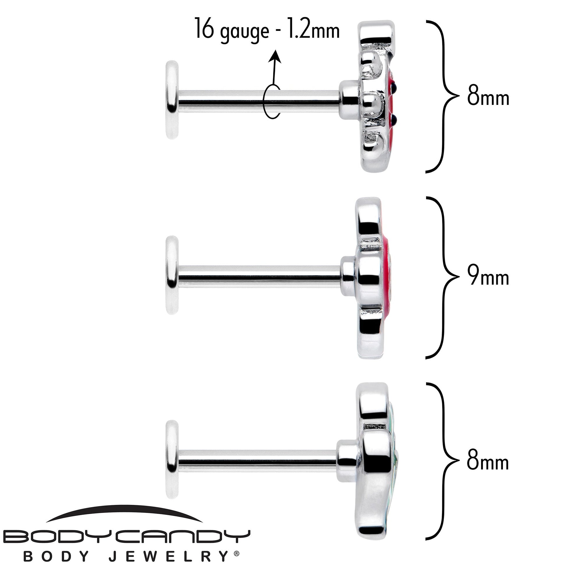 16G 5/16 Ladybug Hippie Flower Labret Monroe Tragus Set of 3