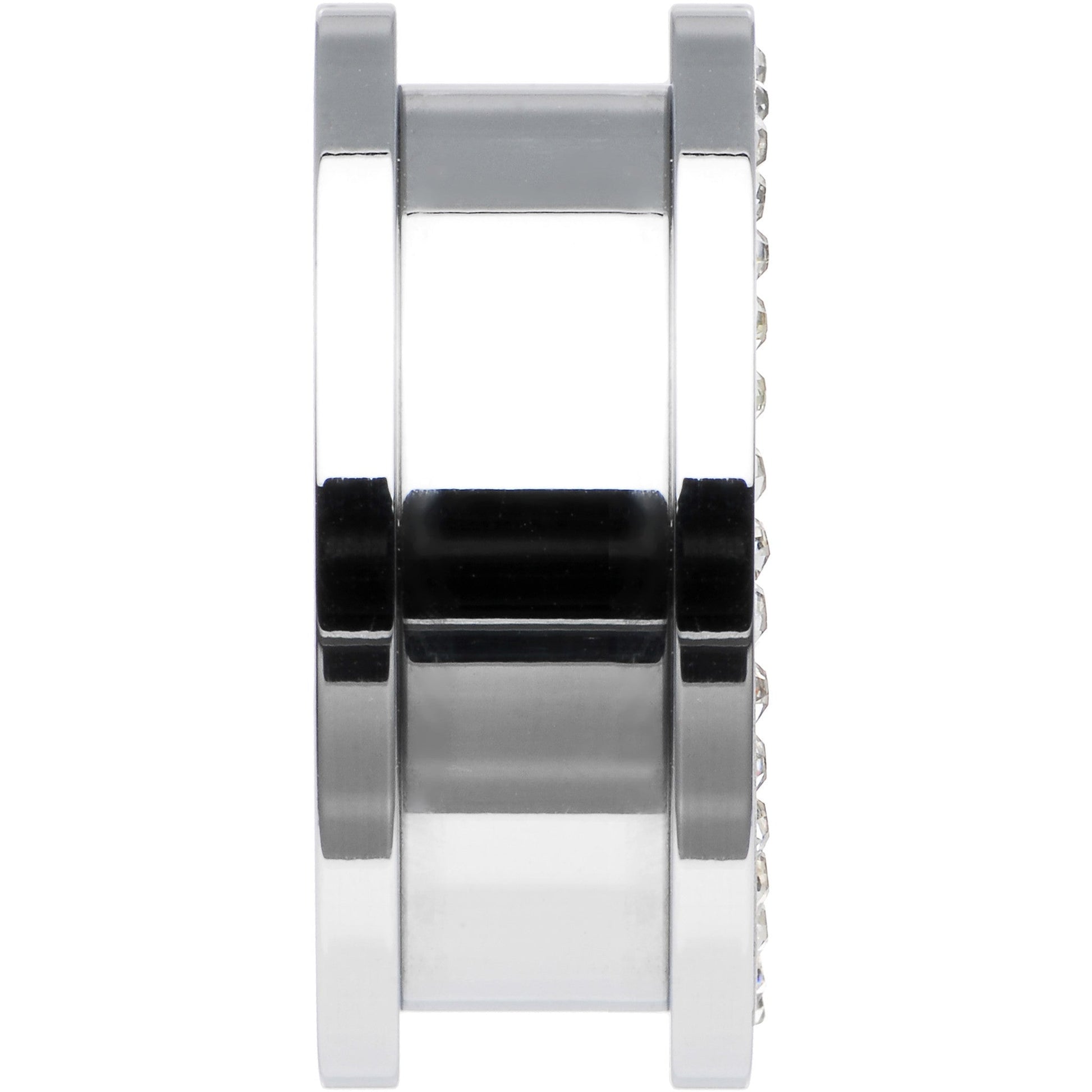 Hypoallergenic jewelry for sensitive skinAnchor your stretched lobes with this screw fit tunnel plug. This 316L surgical grade stainless steel ear plug features a glittering pink anchor design within the body jewelry's tunneled structure surrounded by a circle of clear sparkling accents. This 7/8" tunnel is sold individually, so please make sure to select a quantity of two (2) when ordering if you desire a pair.