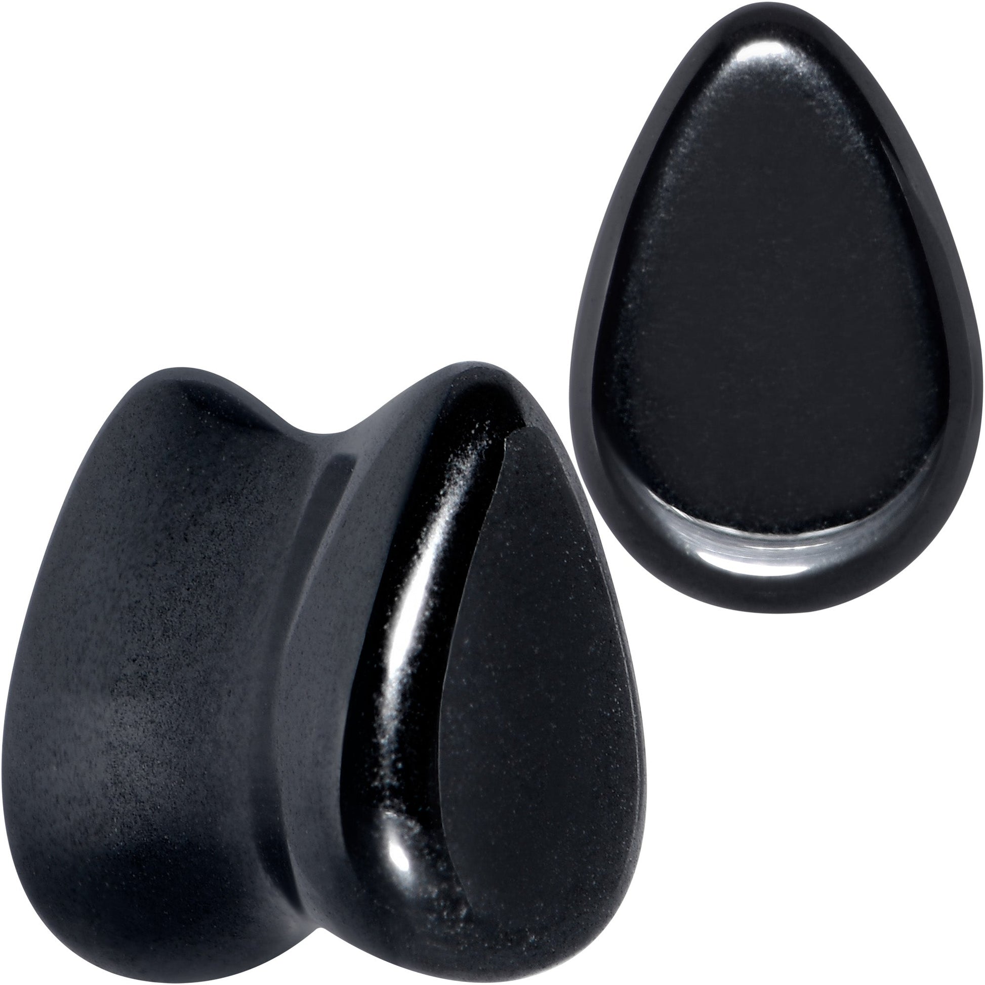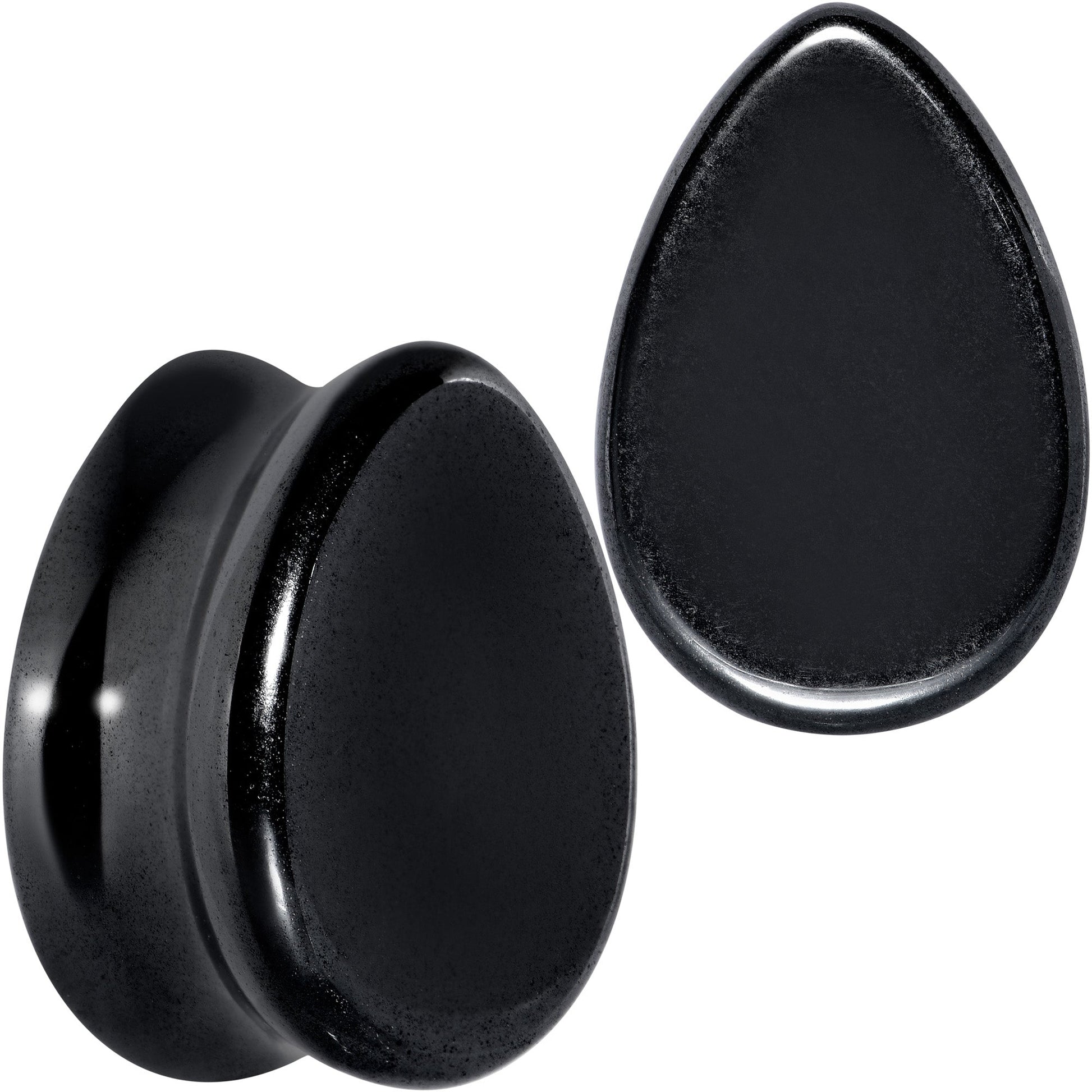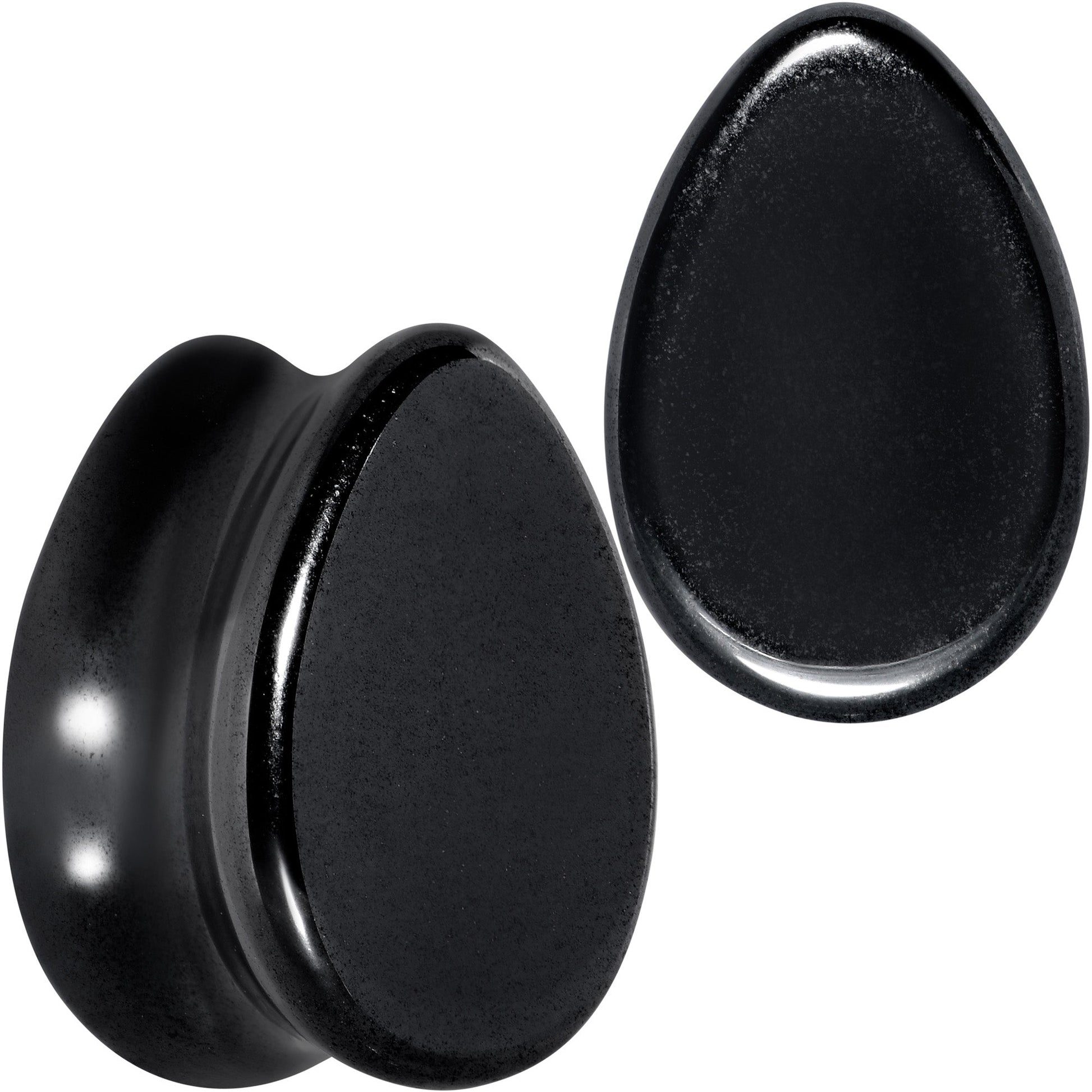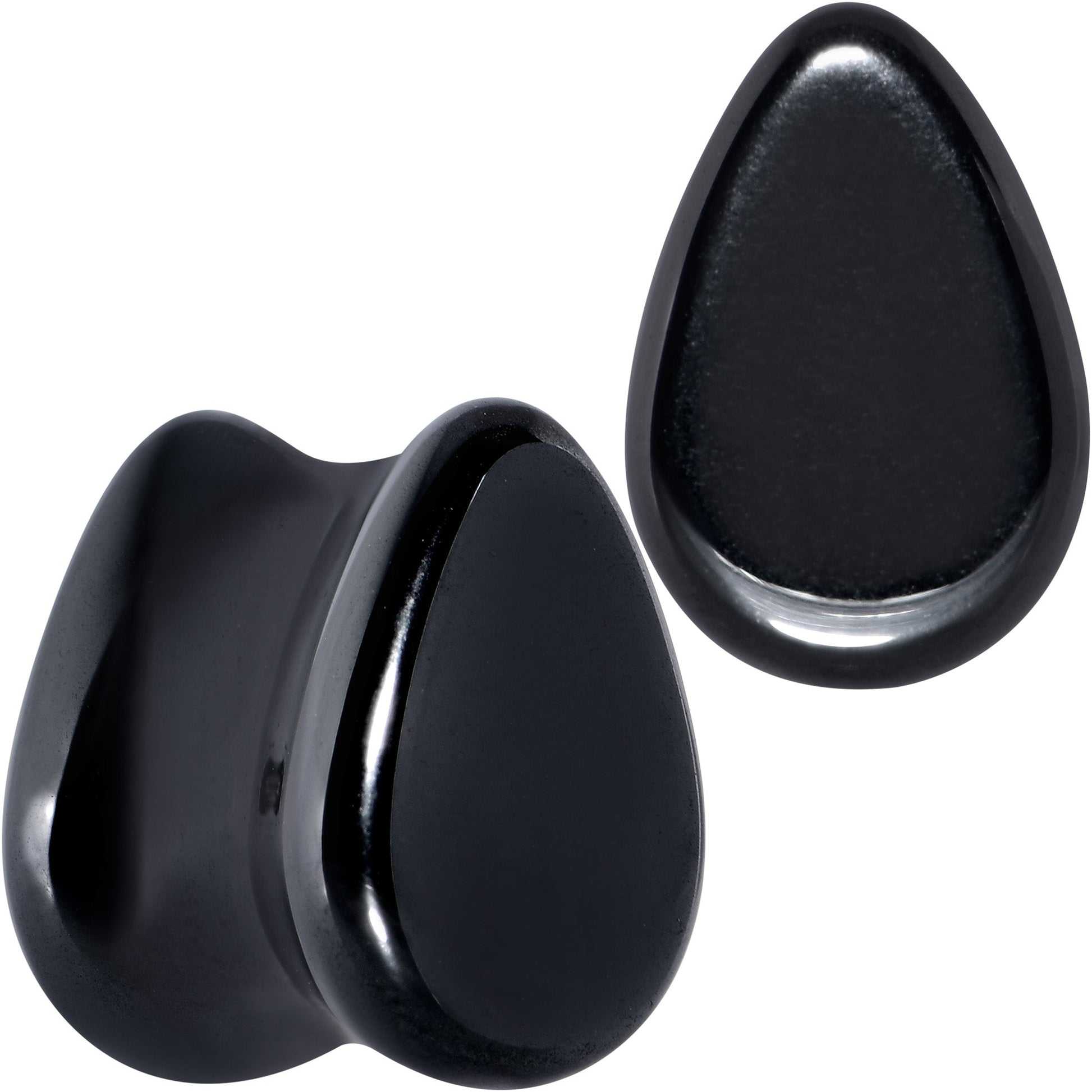Basic black looks anything but basic with these hematite stone drop shape plugs! They're made with black hematite stone and feature a saddle design. This combines ease of insertion with a secure and comfortable fit. Because these plugs are made with natural stone, no two plugs will be the same and each piece will have unique color variations. Let your stretched lobes look basically beautiful with these strikingly simple hematite stone plugs! Sold as a set of two.Specifications