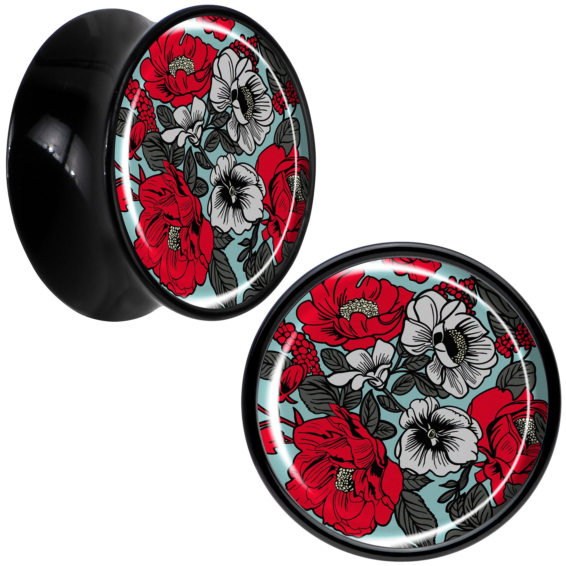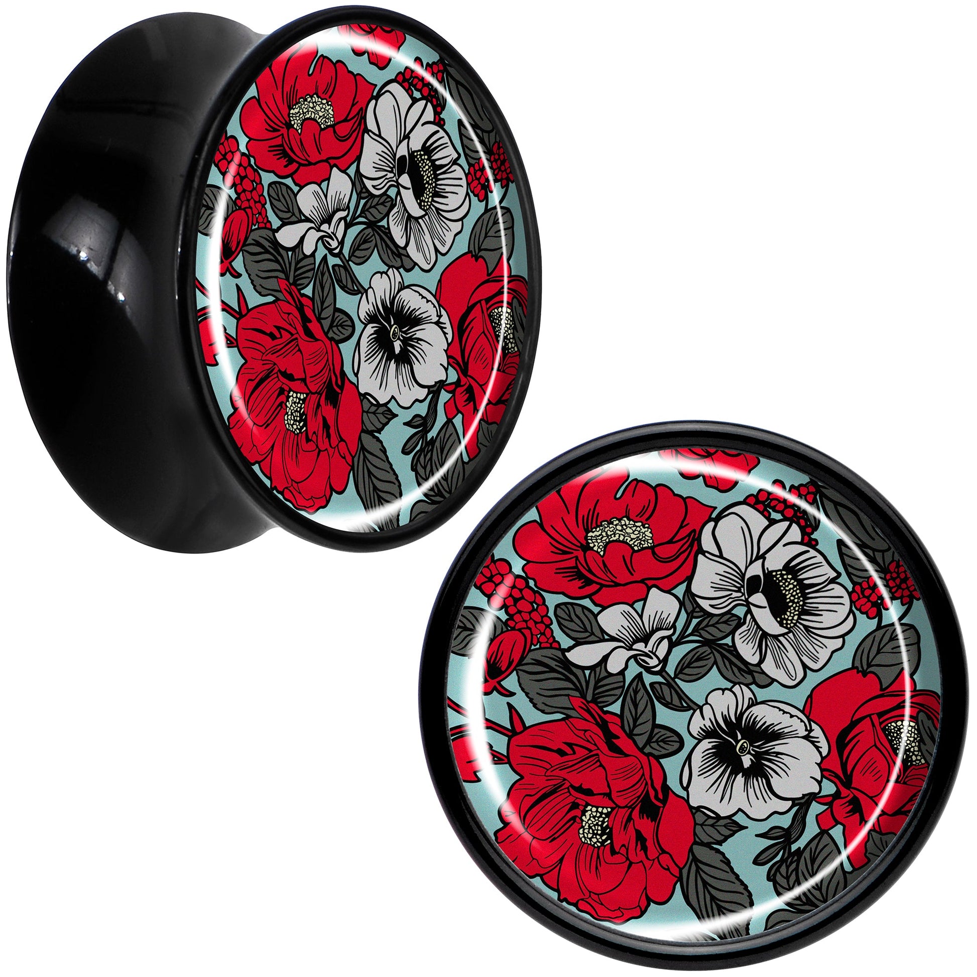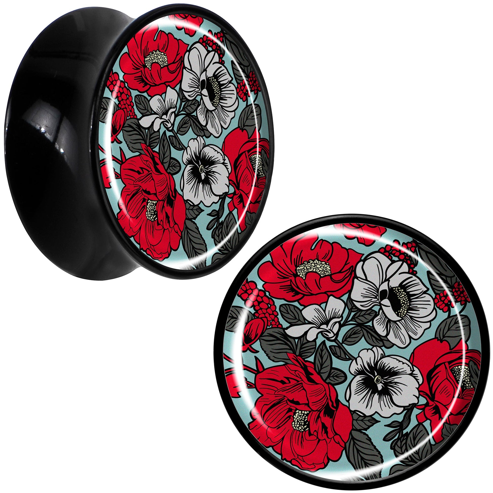 This artist hand drawn flower jewelry is part of our new line of Blossom Creations body piercing jewelry for the season. These plugs for stretched lobes are made with black acrylic and feature a saddle design for comfortable insertion and removal. Each one features a logo inlay charm with an eruption of vibrant red flower taking center stage. You'll be coming up roses with this romantic rose ear gauges Sold as a set of two