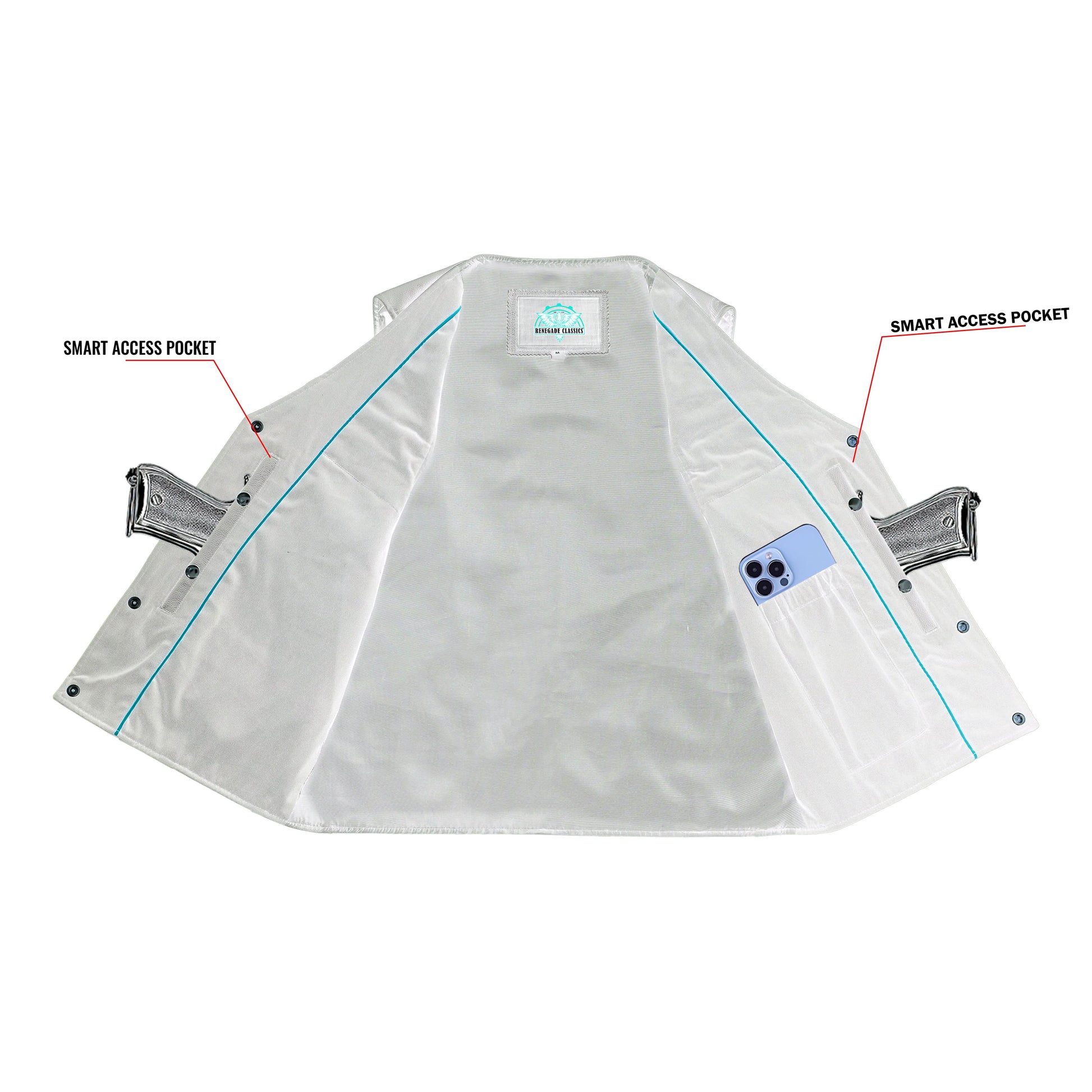 You'll also have two concealed carry pockets made of durable textile. Both pockets contain holsters and snap closures to keep your gun securely in place. We reinforce the shoulders for maximum concealing everywhere you go.