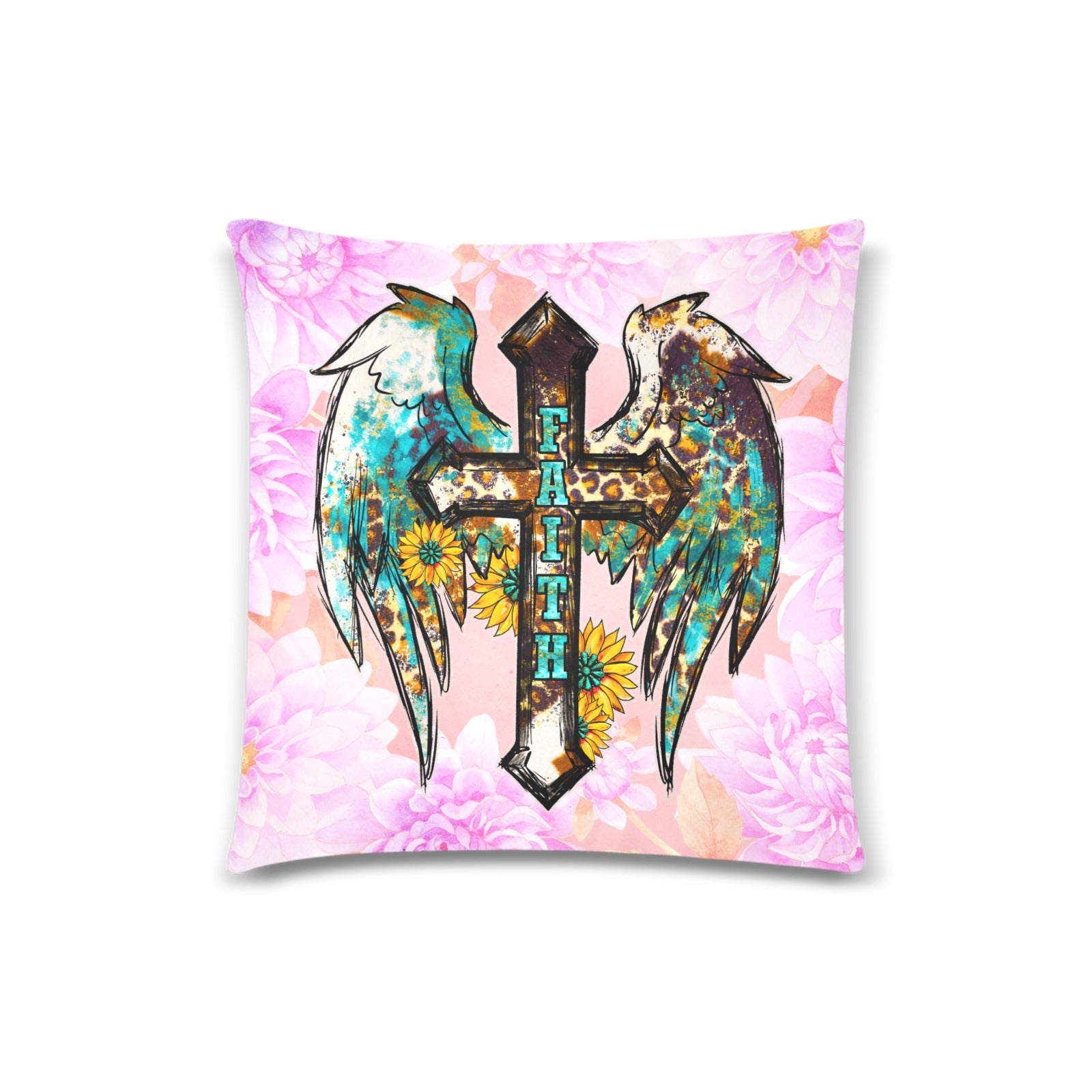 Cross with Wings Throw Pillow Cover