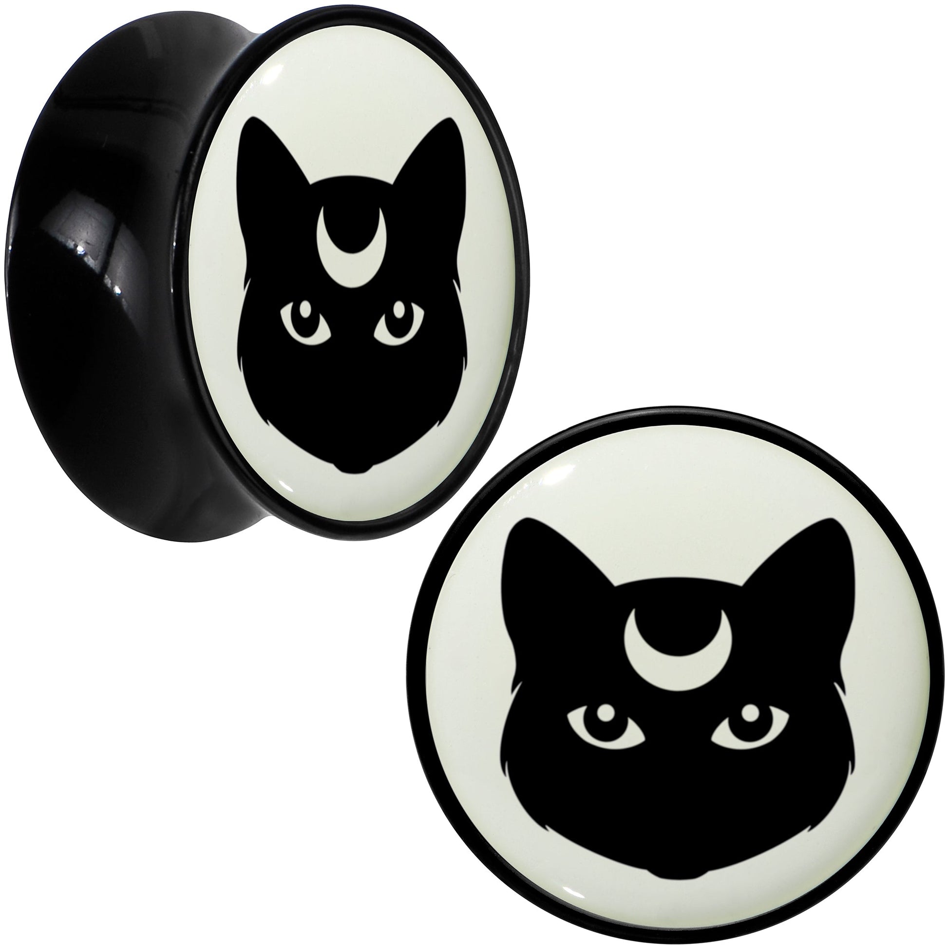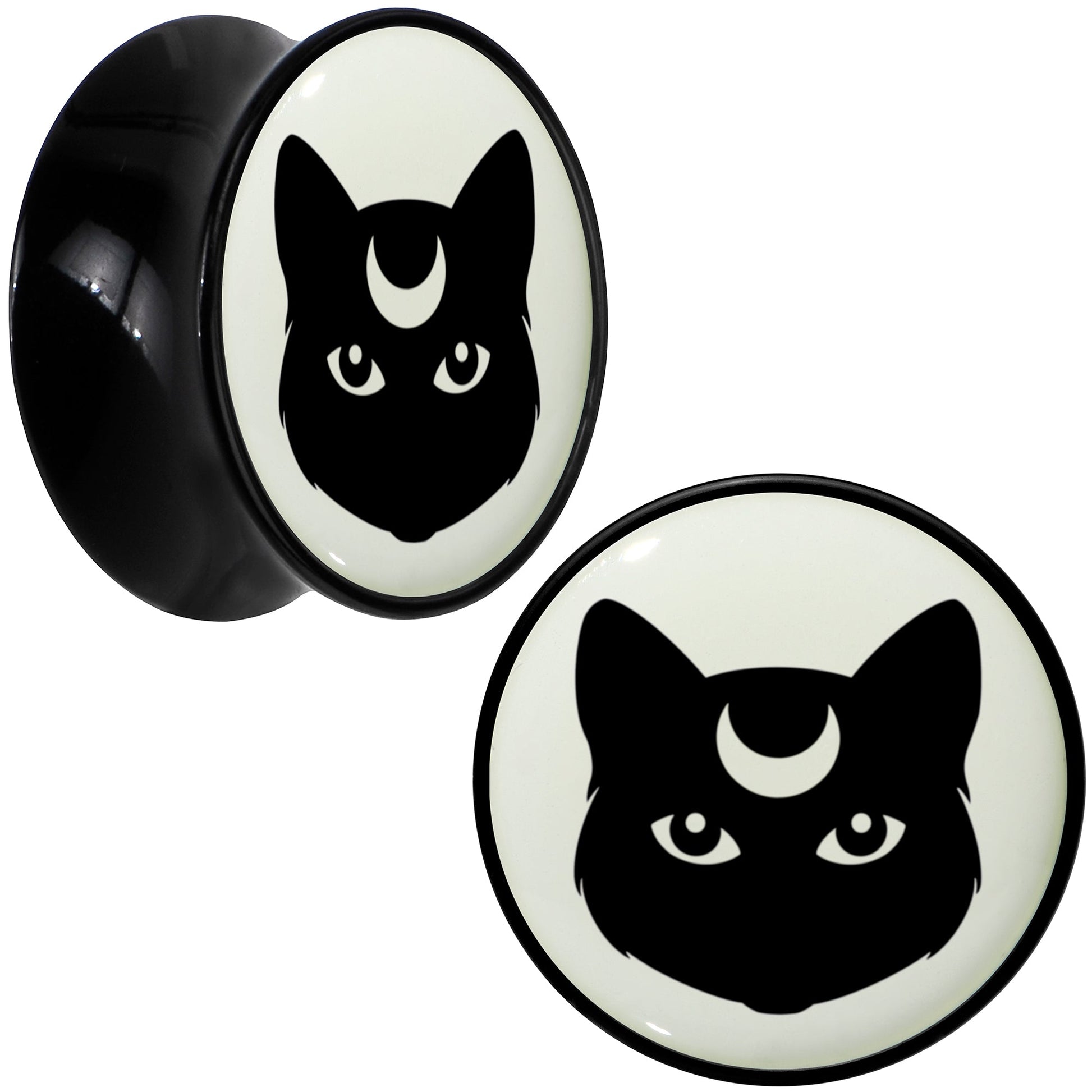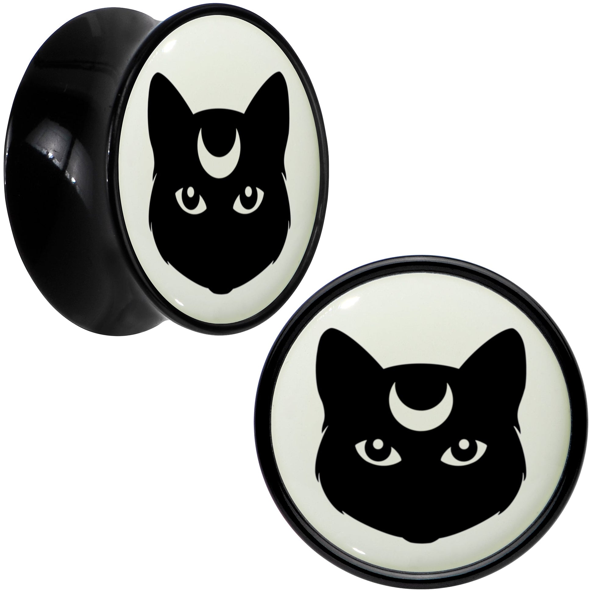 Glow in the Dark Mystic Kitty Cat Black Acrylic Saddle Plug Set