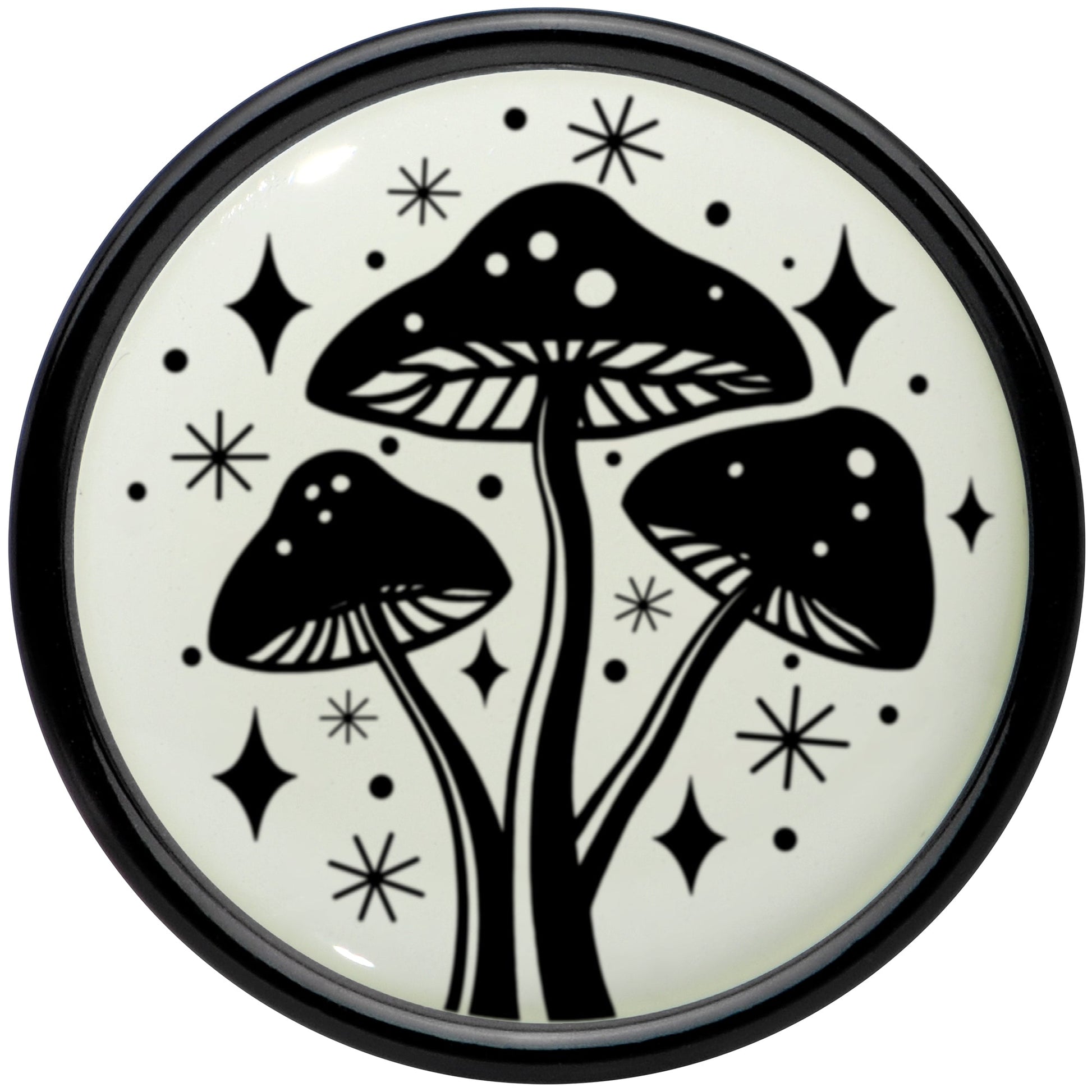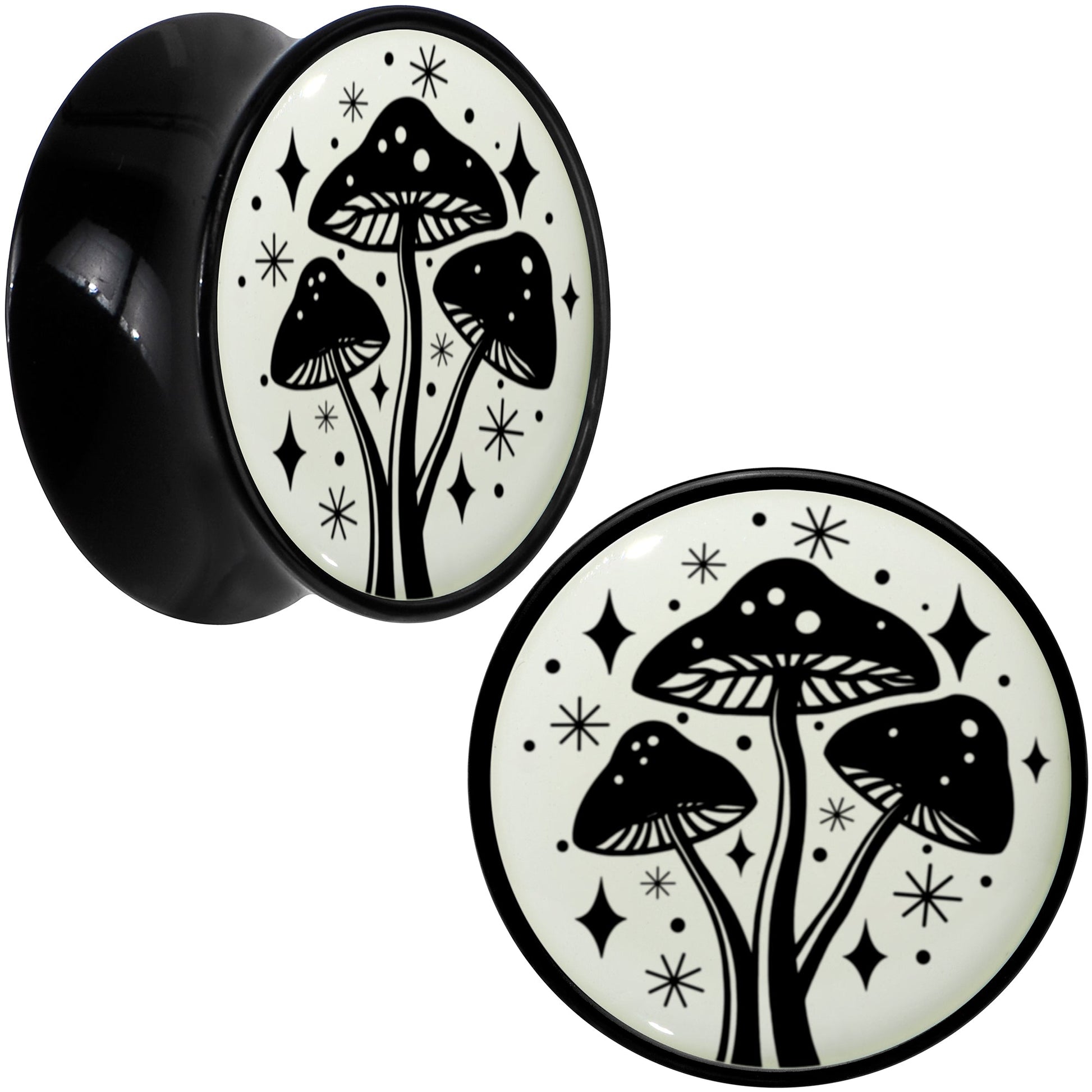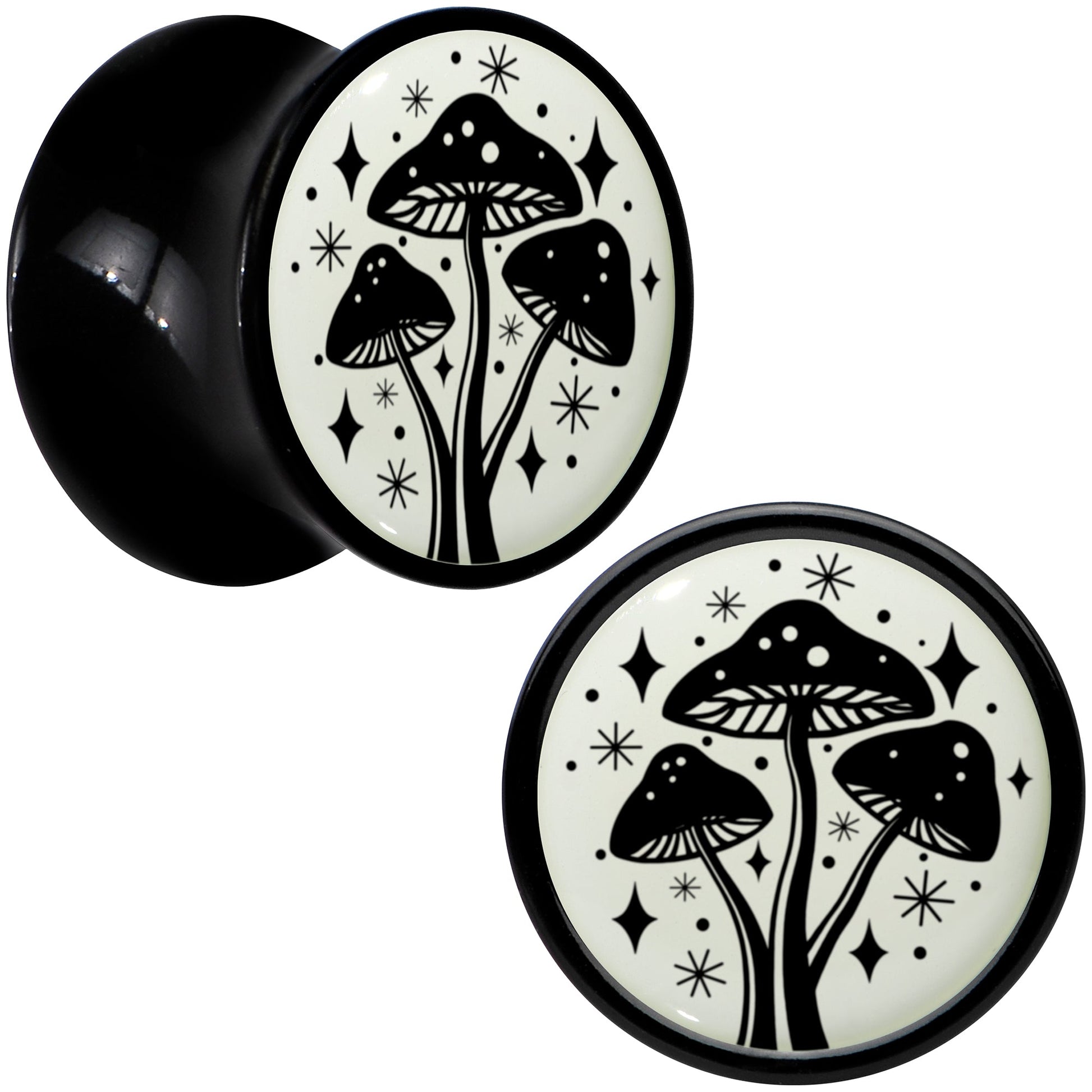 Hypoallergenic jewelry for sensitive skin.Glow in the Dark Mystic Mushroom Black Acrylic Saddle Plug Set