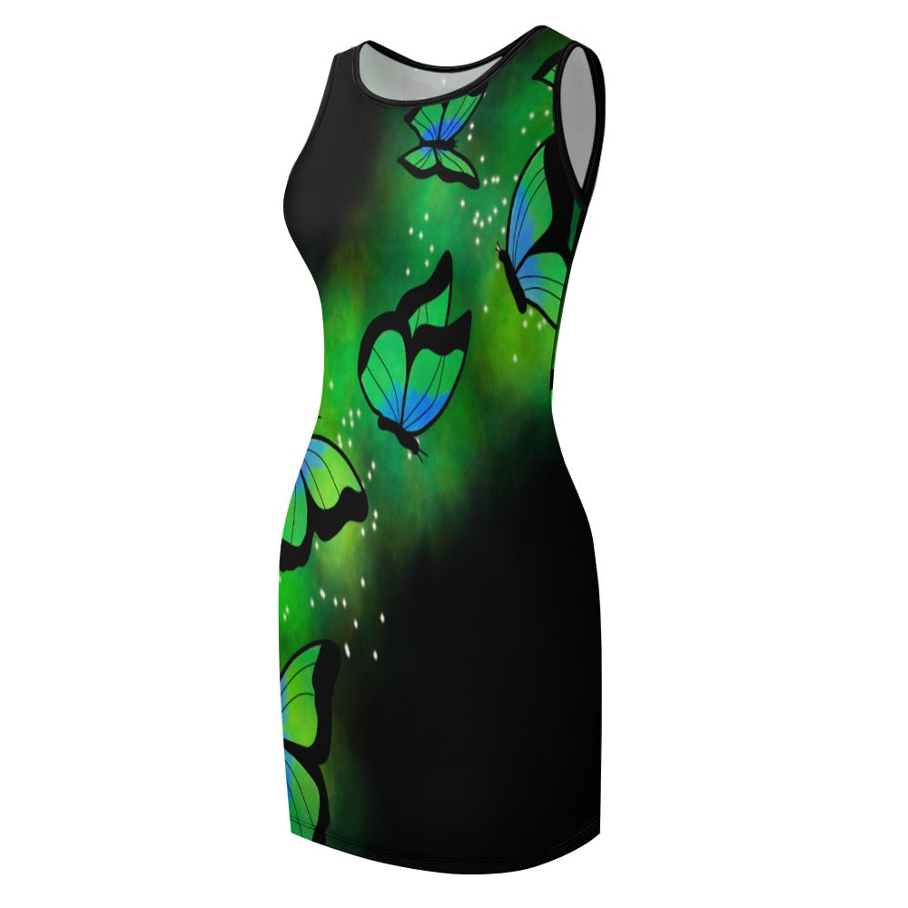 Green Butterflies Slim Fit Sleeveless Tank Dress