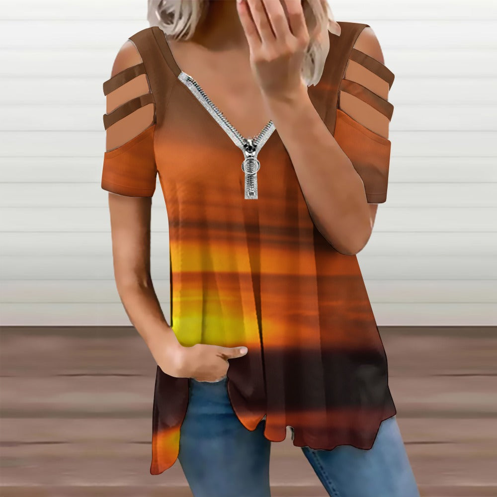 Ladies Beach Sunset BE Zip Off Shoulder Top