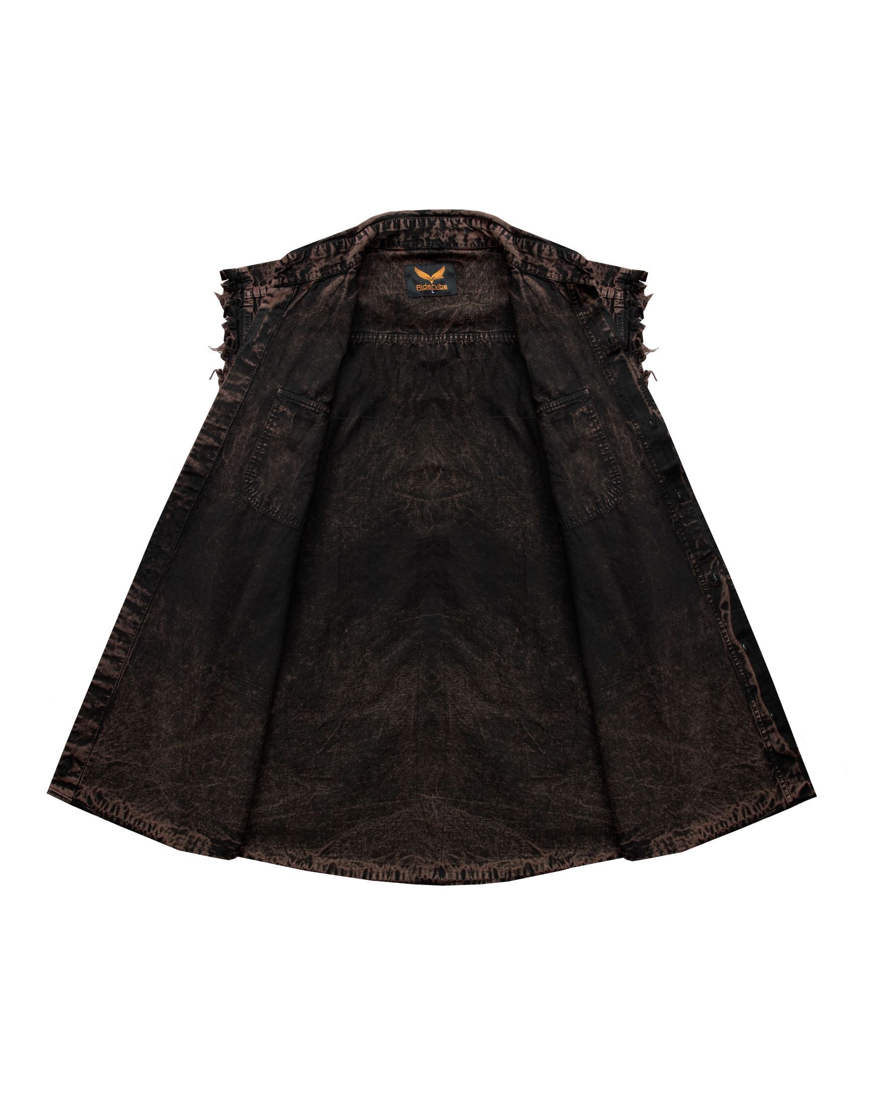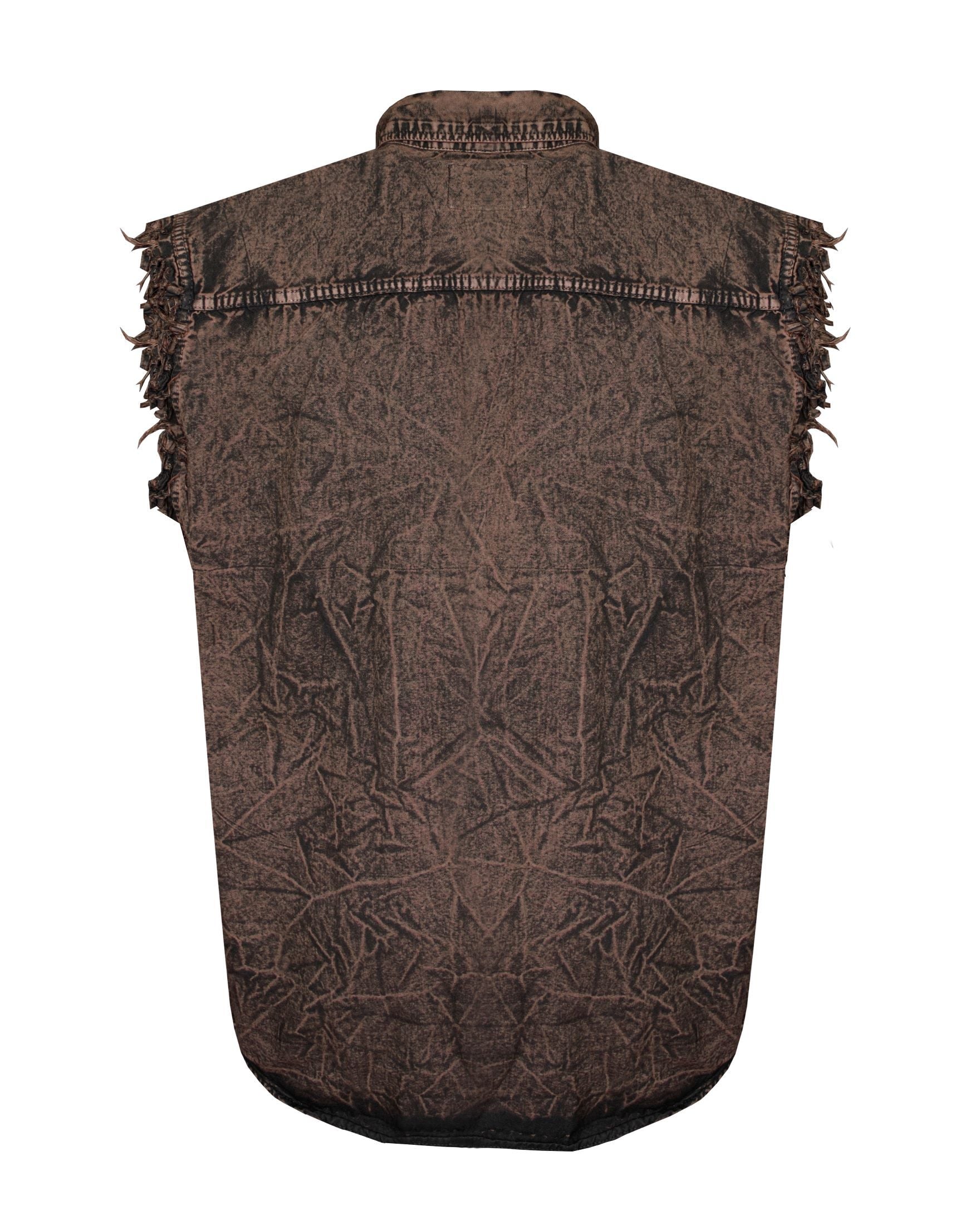Men's Biker Cutoff Cotton Shirt Stonewash Chocolate Brown