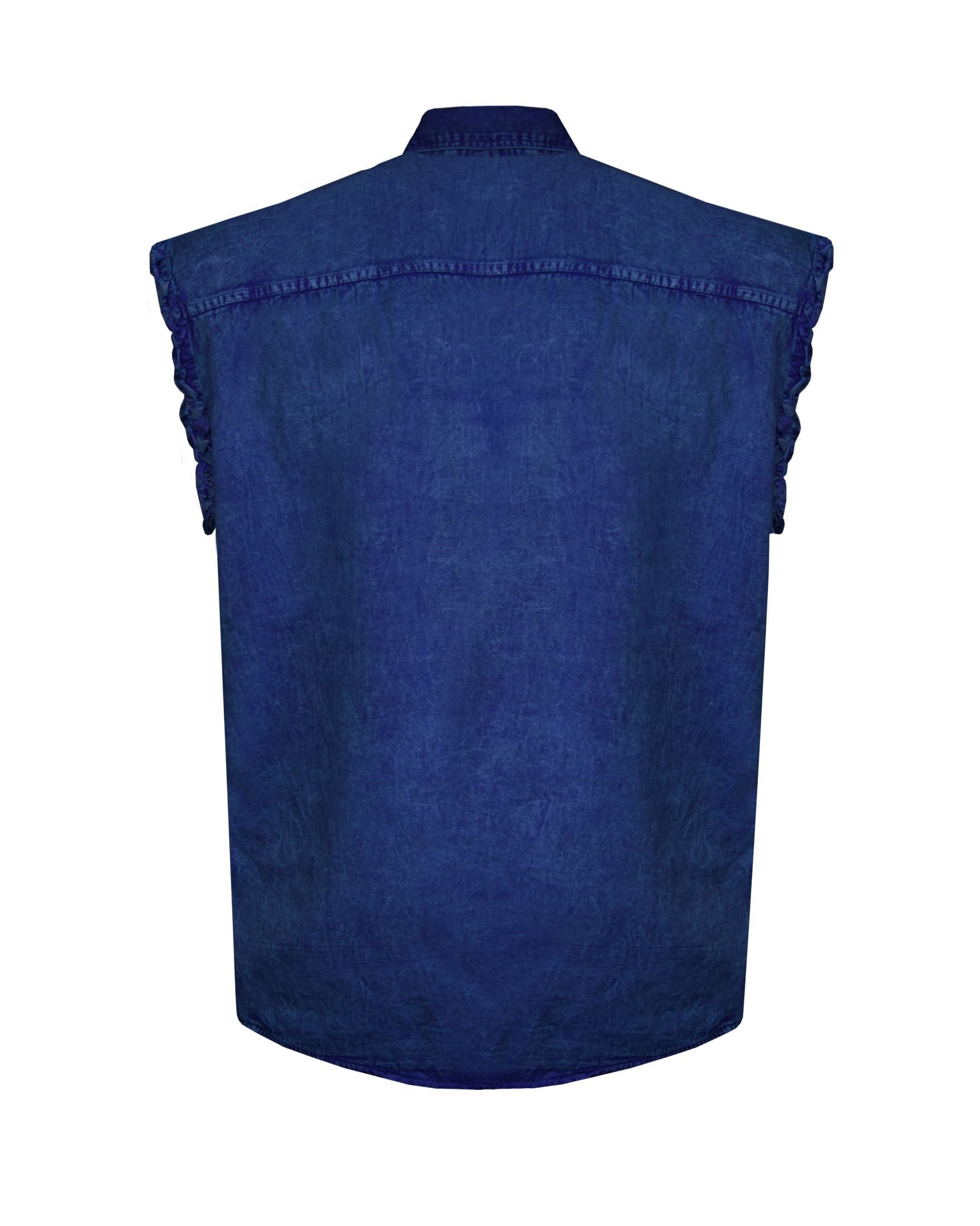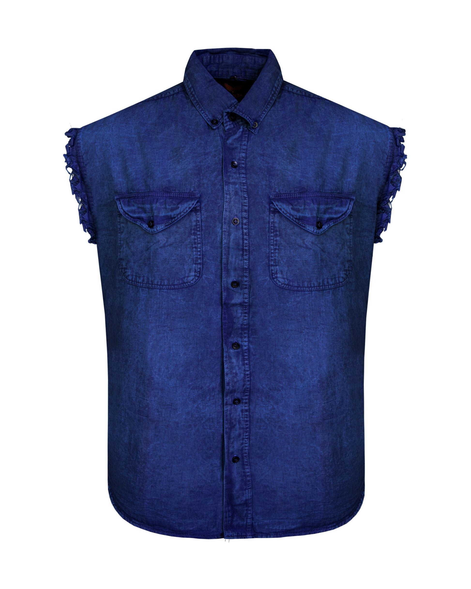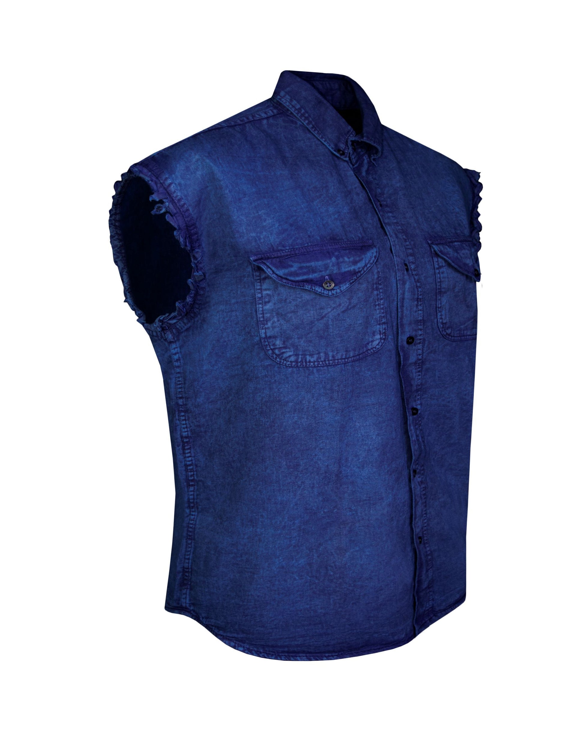Men's Biker Cutoff Cotton Shirt Stonewash Ocean Blue