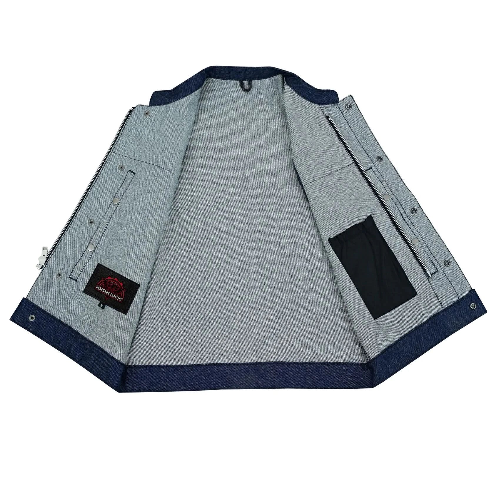 Men's Blue Rough Rub-Off Raw Finish Denim Vest