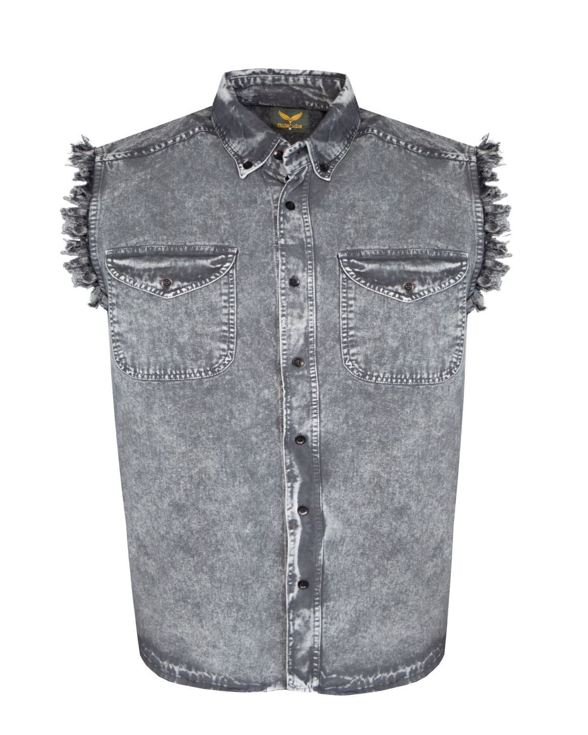 Men's Biker Cutoff Cotton Shirt Stonewash Grey