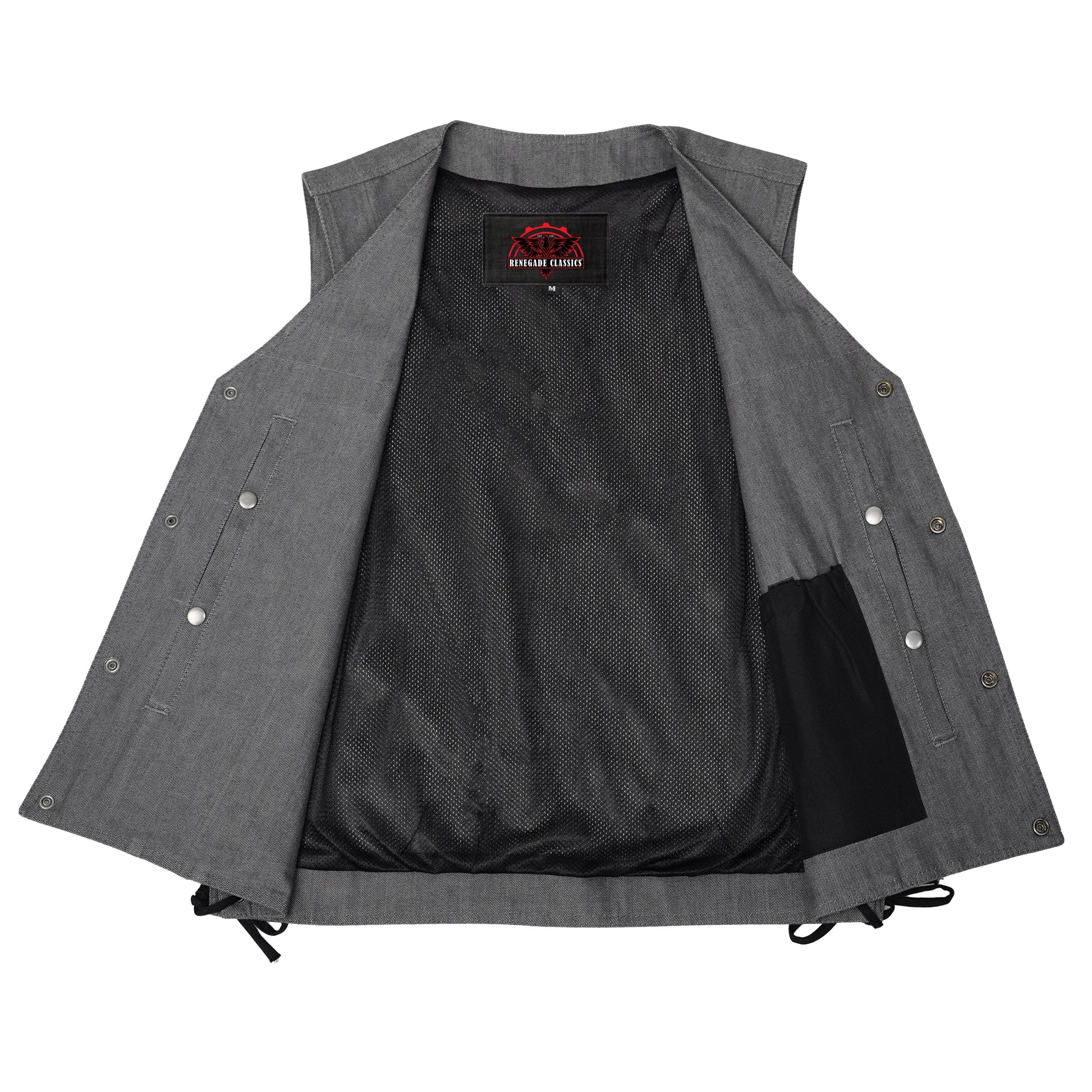 Men's Rough Rub-Off Raw Finish Broken Gray Denim Vest