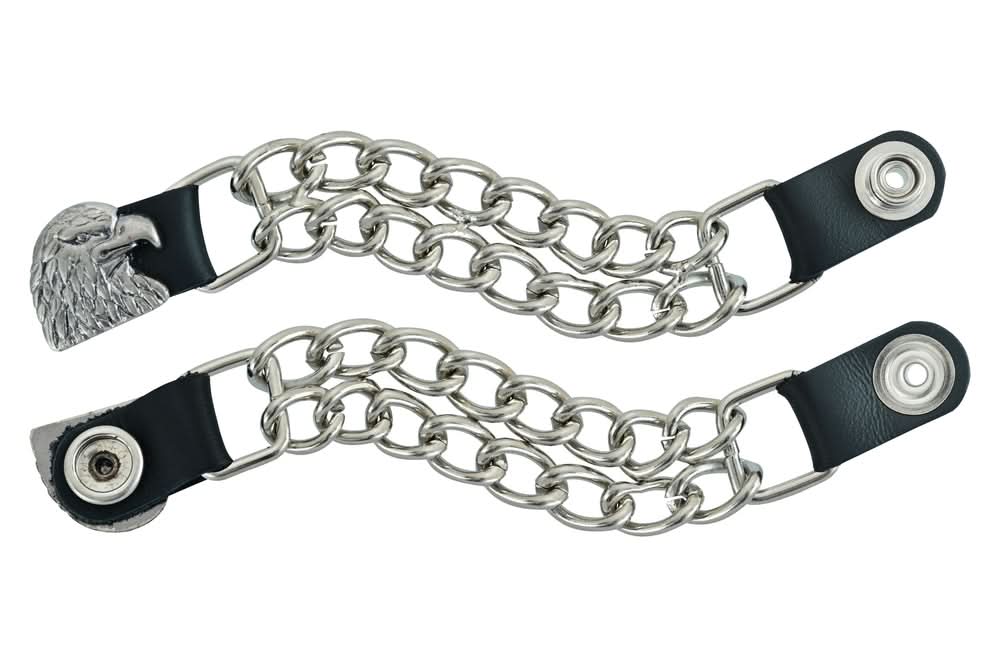 The vest extender also features a chrome motorcycle chain design, giving it a rugged and stylish look.