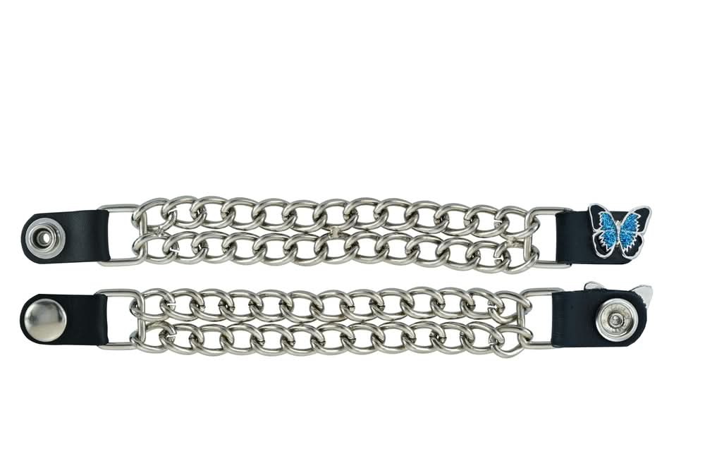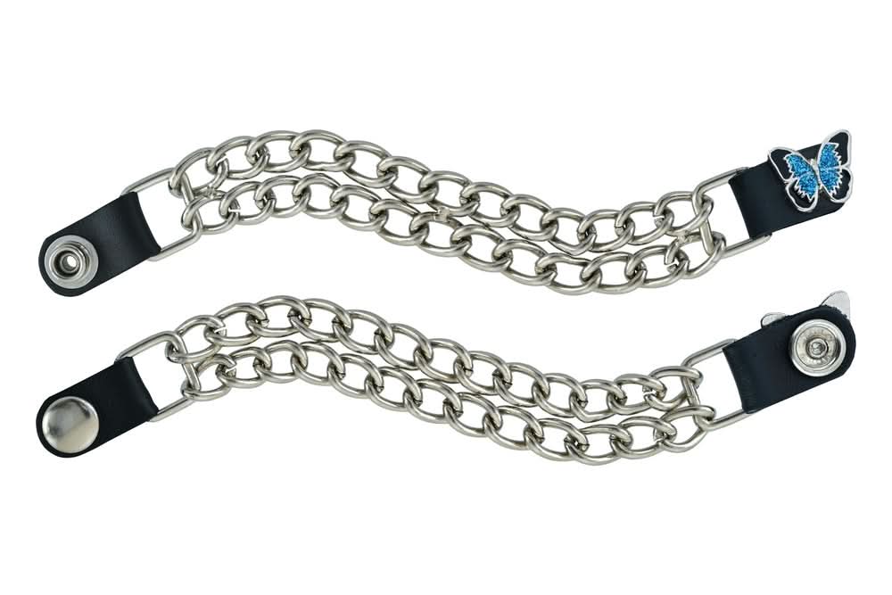 The vest extender also features a chrome motorcycle chain design, giving it a rugged and stylish look.