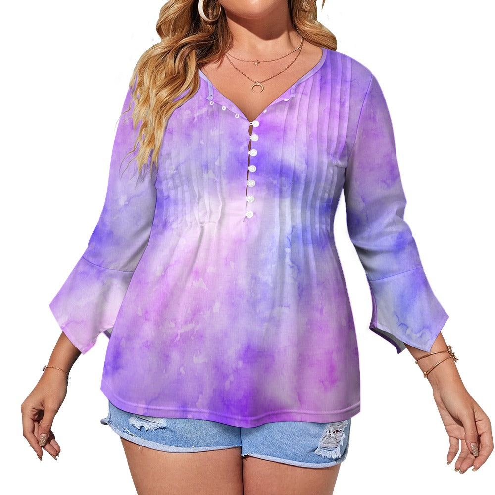 Purple Tie Dye Ruffled Petal Sleeve Top
