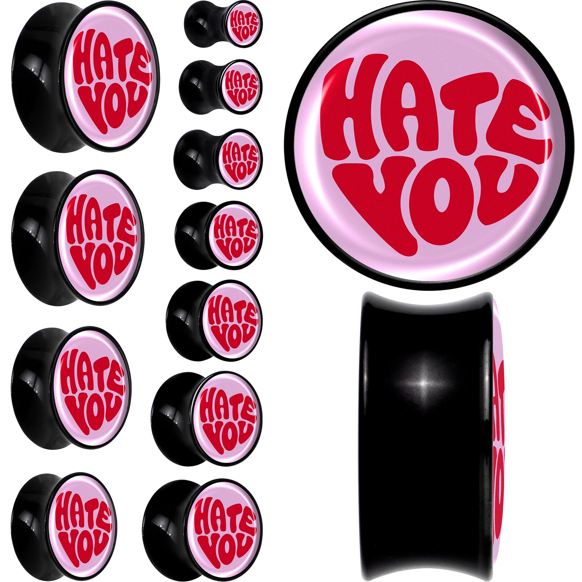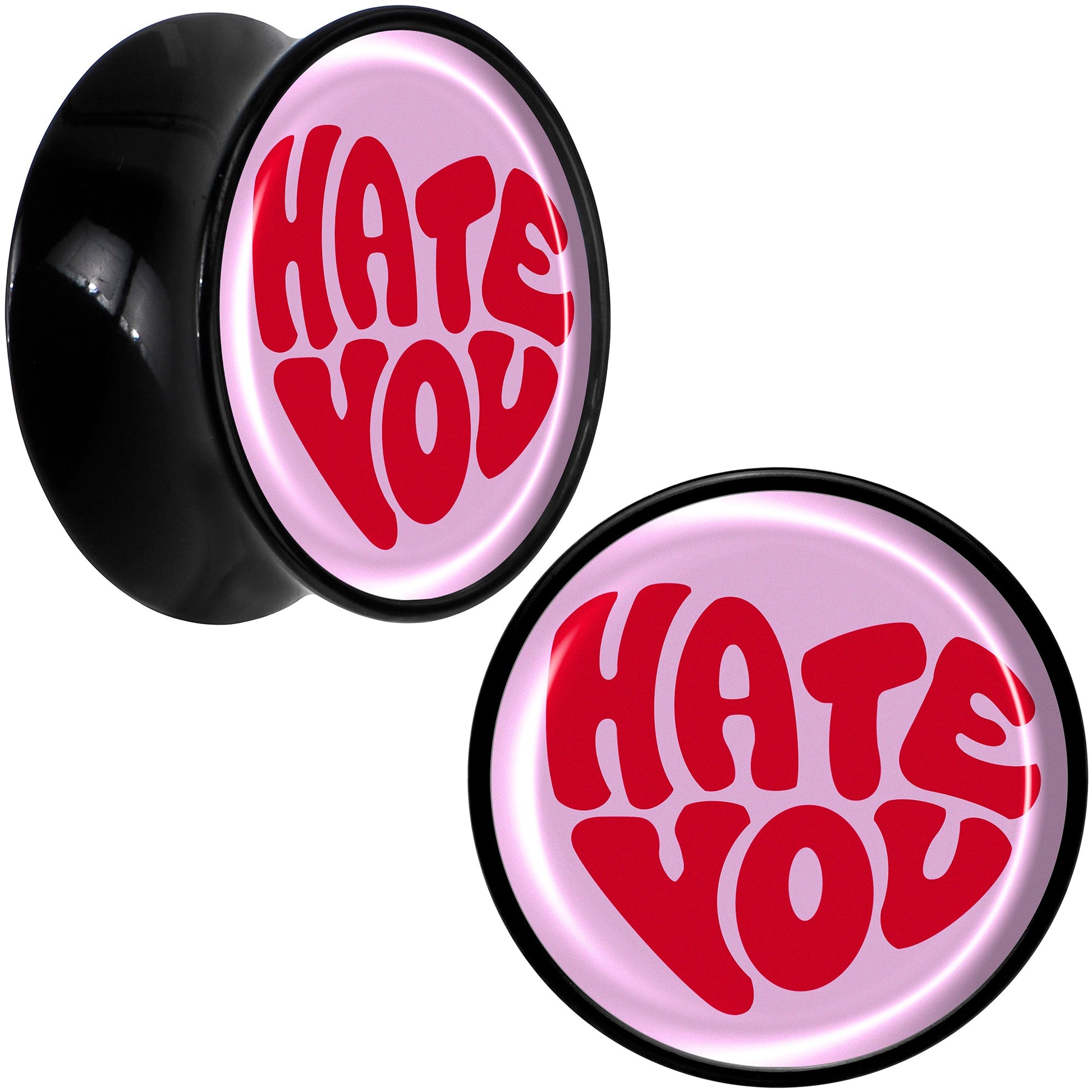 Retro Text Hate You Black Acrylic Saddle Plug Set by Onyx O