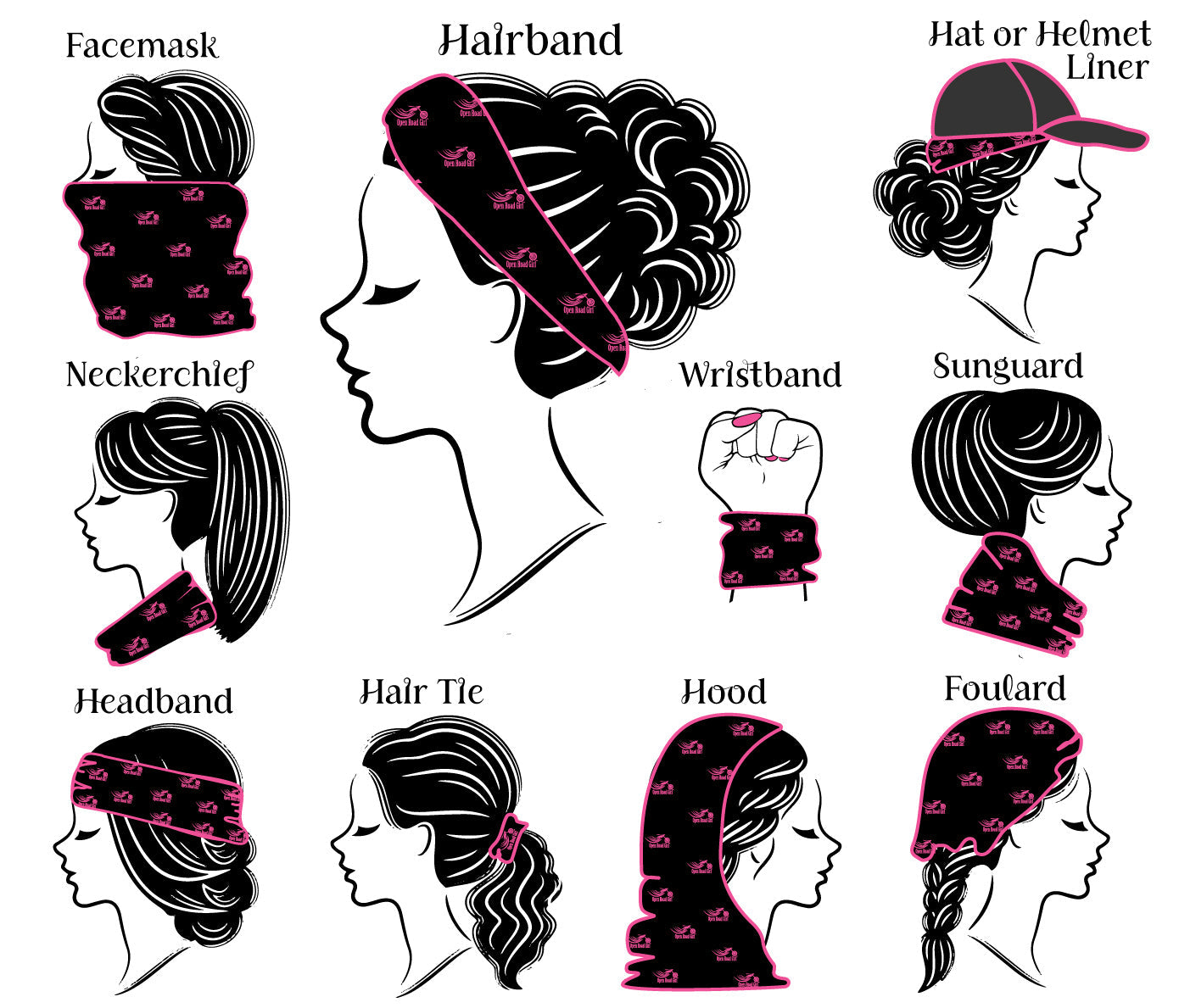 These Open Road Girl neck tubes can be worn MULTIPLE WAYS!