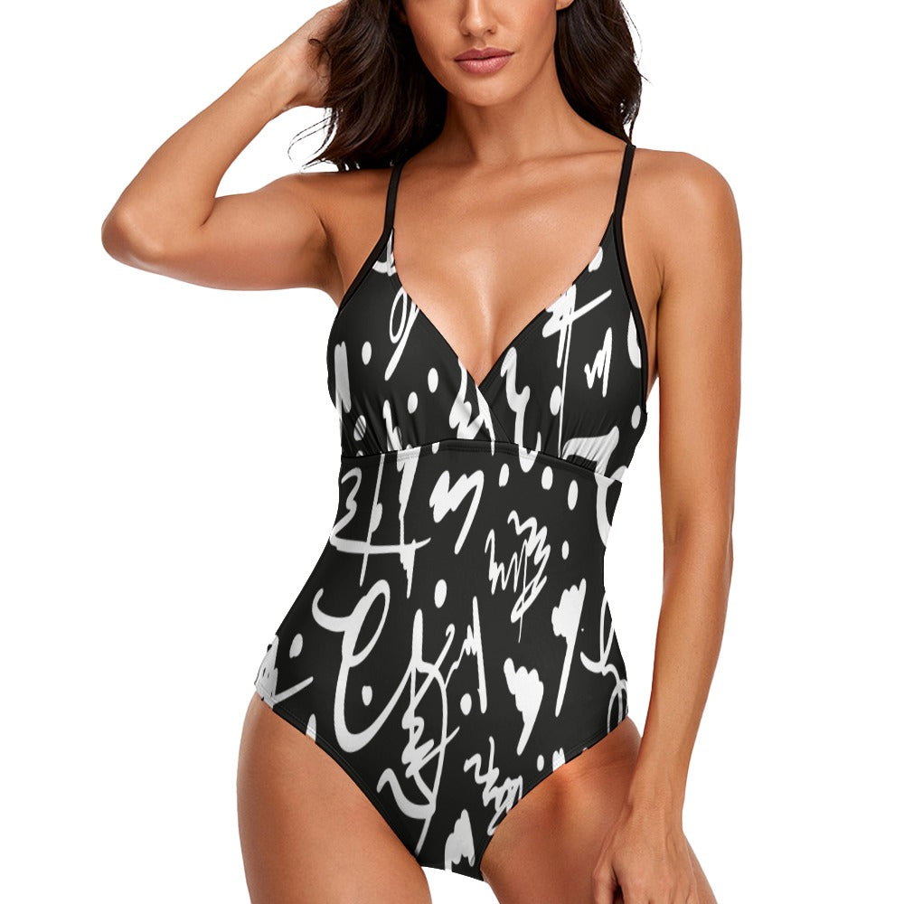 Scribbles Sexy Female Sling One Piece Swimsuit