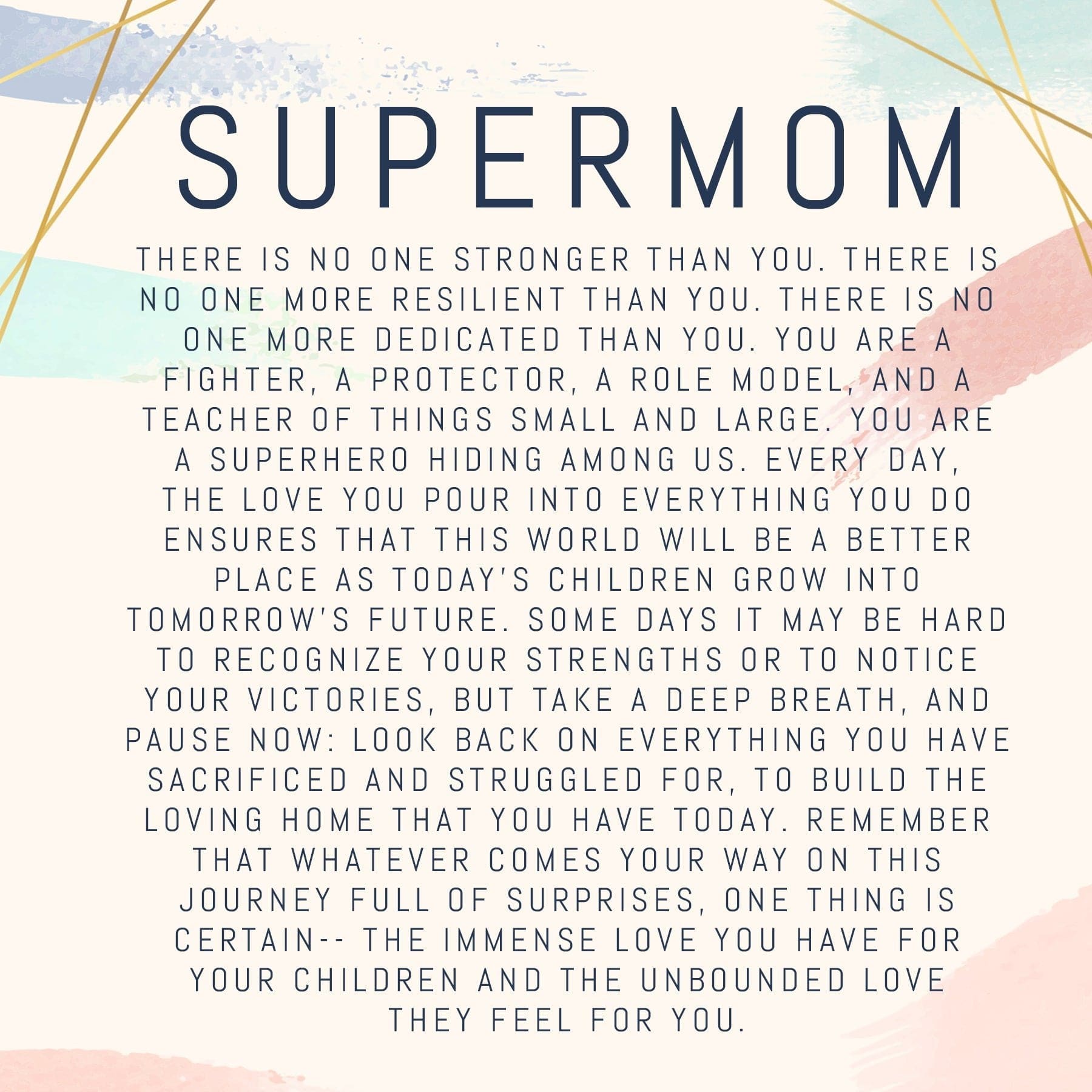 Single mothers are real life superheros-- they do it all, and know the true meaning of love and sacrifice. Show your favorite single mom how much you appreciate her with this beautiful keepsake, and reminder her how special she is.