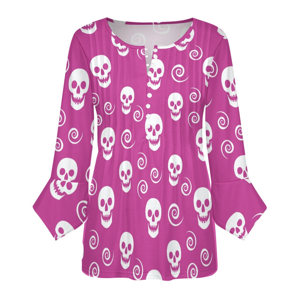 Skulls and Swirls Ruffled Petal Sleeve Top