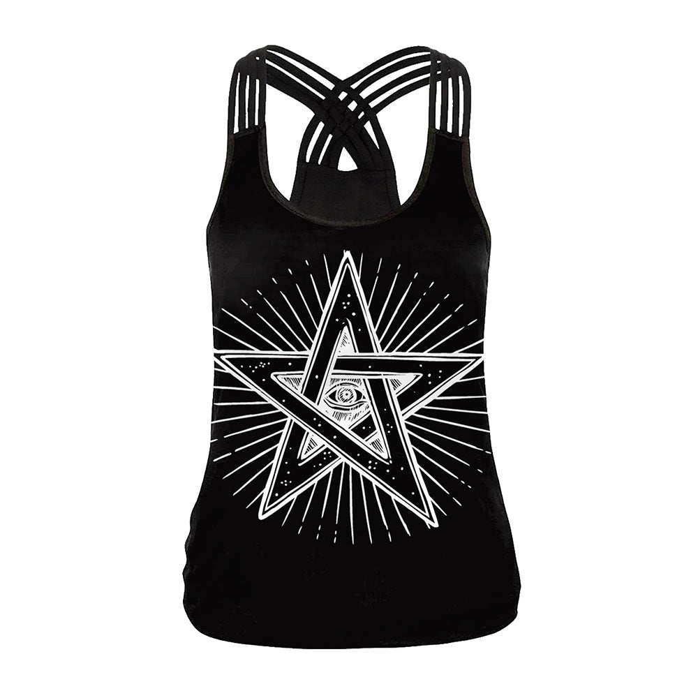 Women's Star Criss Cross Back Tank Top Vest Sleeveless Tees
