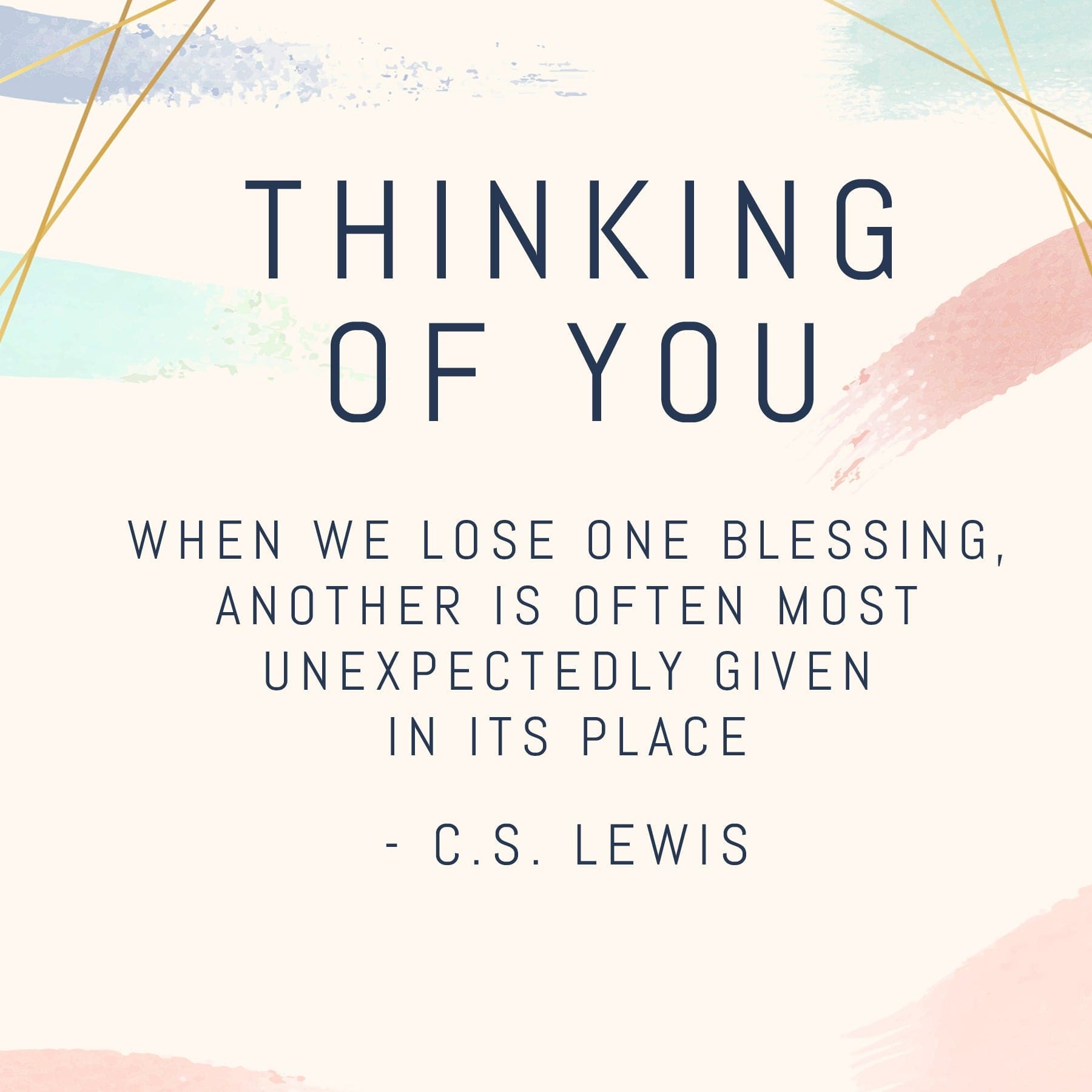 When we lose one blessing, another is often most unexpectedly given in its place - C.S. Lewis