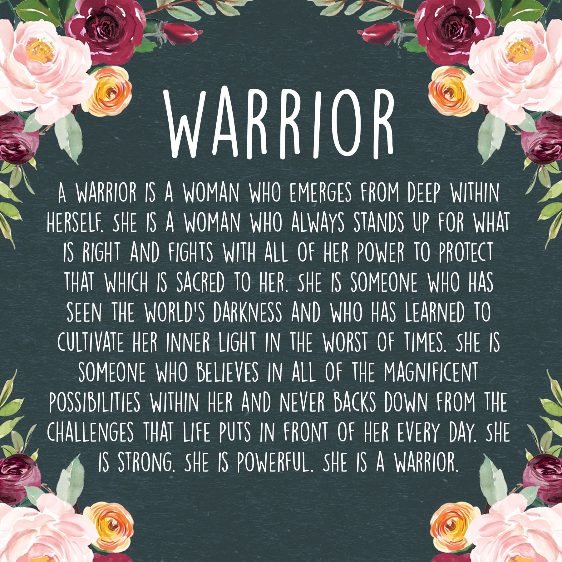 Warrior Quote: A Warrior is a woman who emerges from deep within herself. she is a woman who always stands up for what is right and fight with all of her power to protect that which is sacred to her. she is someone who has seen the world's darkness and who has learned to cultivate her inner light in the worst of time. she is someone who believes in all of the magnificent possibilities within her and never backs down from the challenges that life puts in front of her every day. she is strong. she is powerful. she is a warrior.