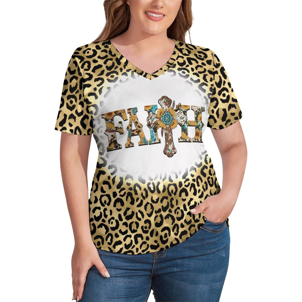 Western Faith Ladies V-Neck Loose Short Sleeve T-Shirt